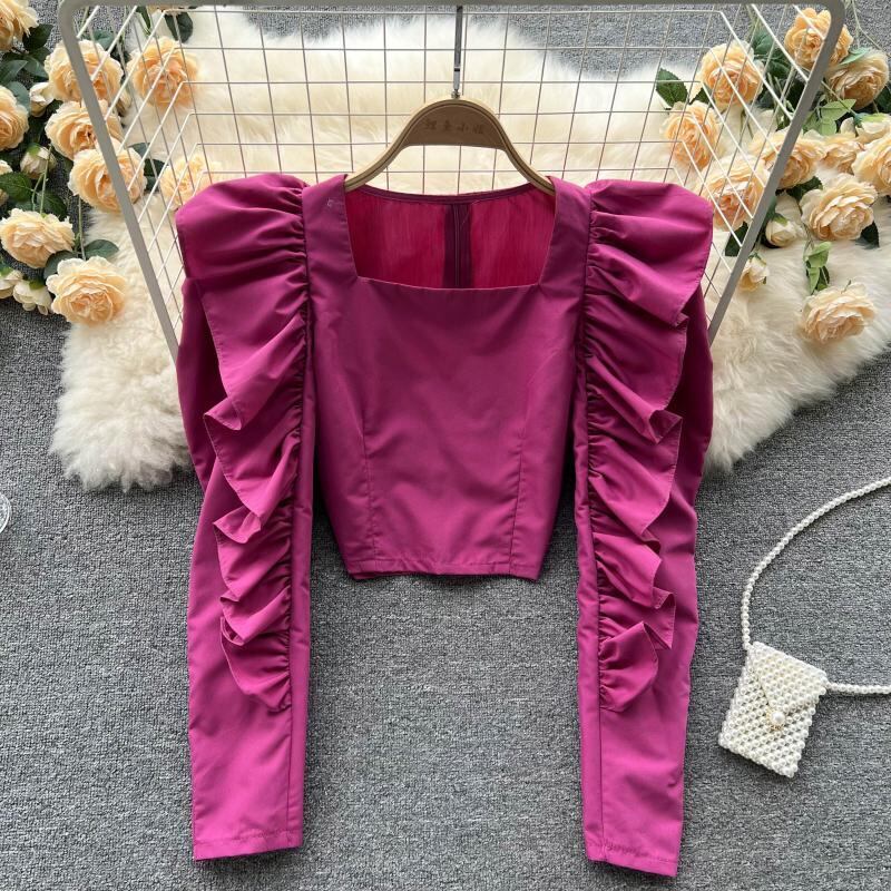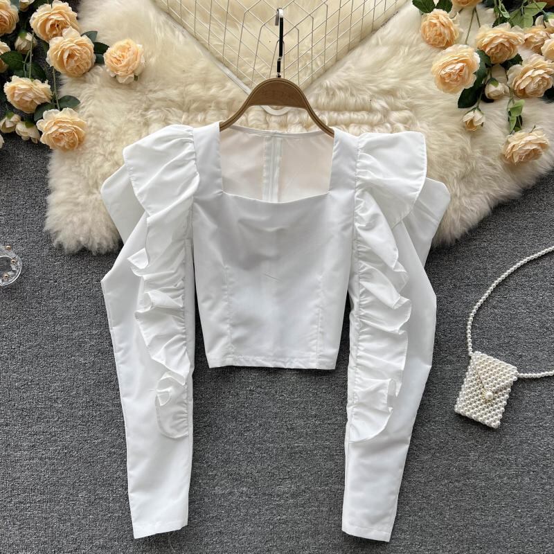 2022 spring women's collar shirt women's design sense niche shirt long-sleeved puff sleeves version slim collarbone top ロング スプリング 春物 スリム lyxaj46403182294