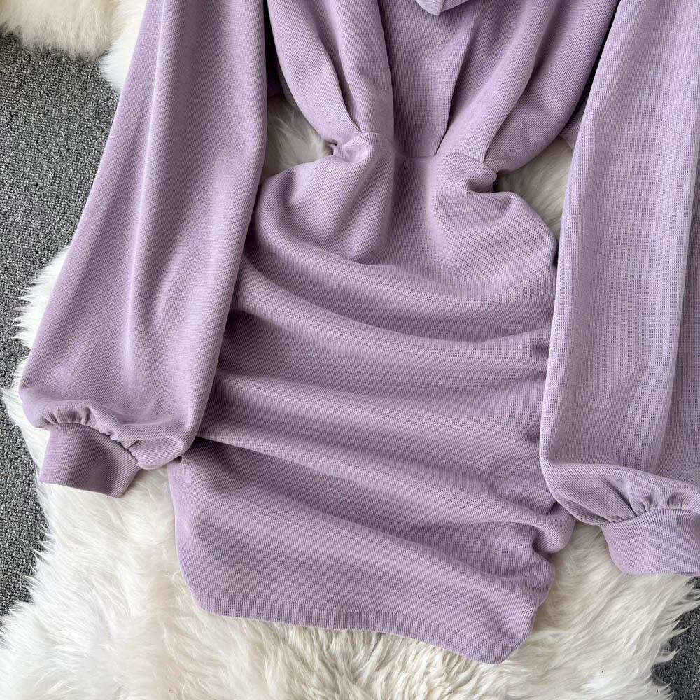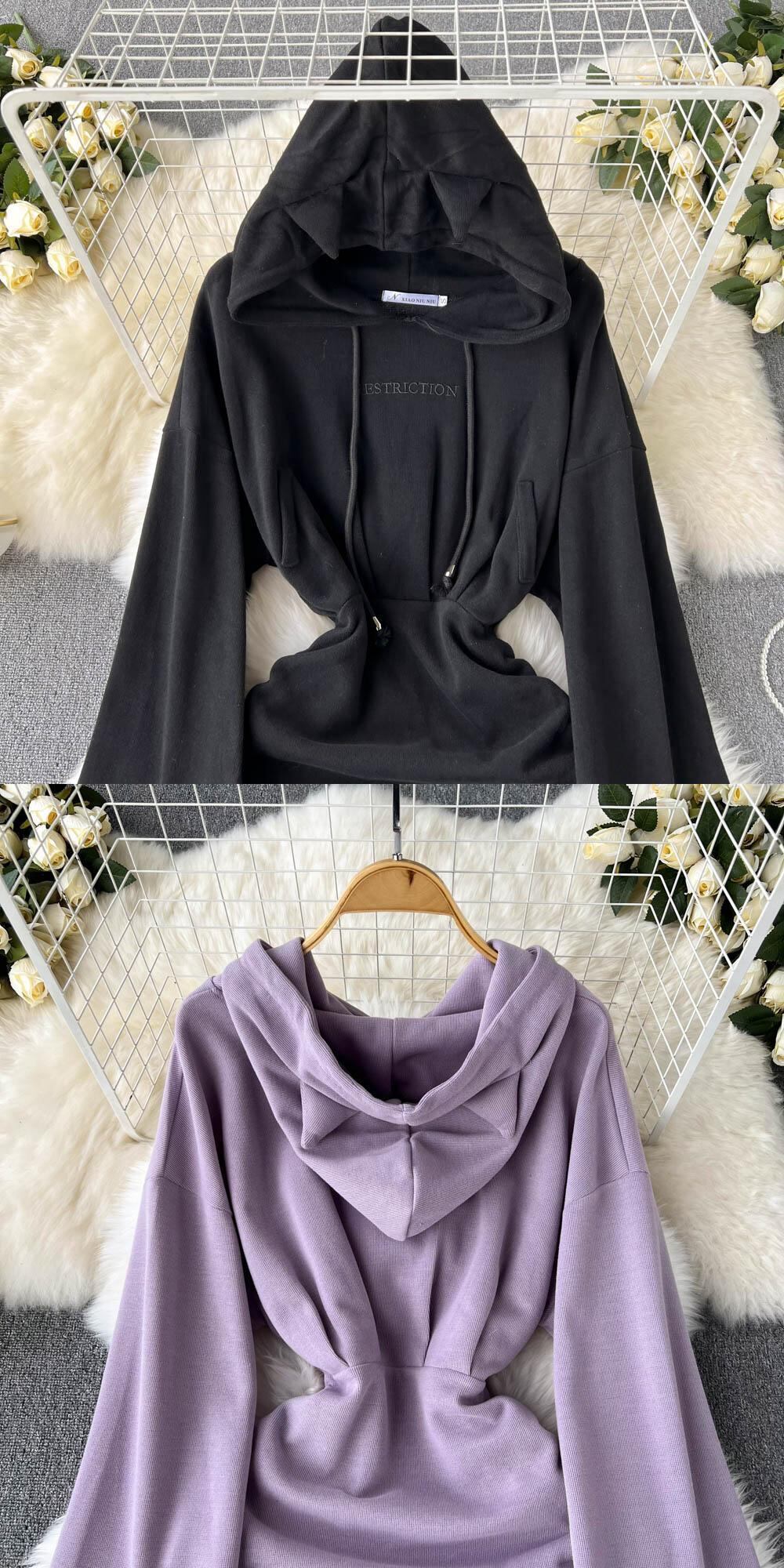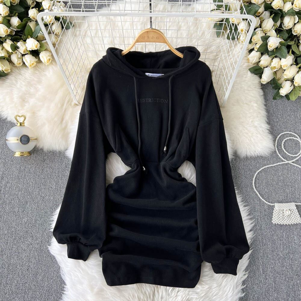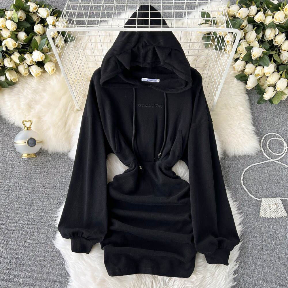 Hong Kong style chic hooded sweater dress small autumn and winter 2021 new pleated waist bag hip short skirt ショート プリーツ オータム 秋物 ウィンター 冬物 スカート lyxaj92999665159