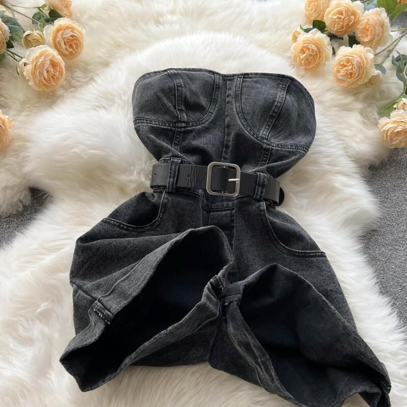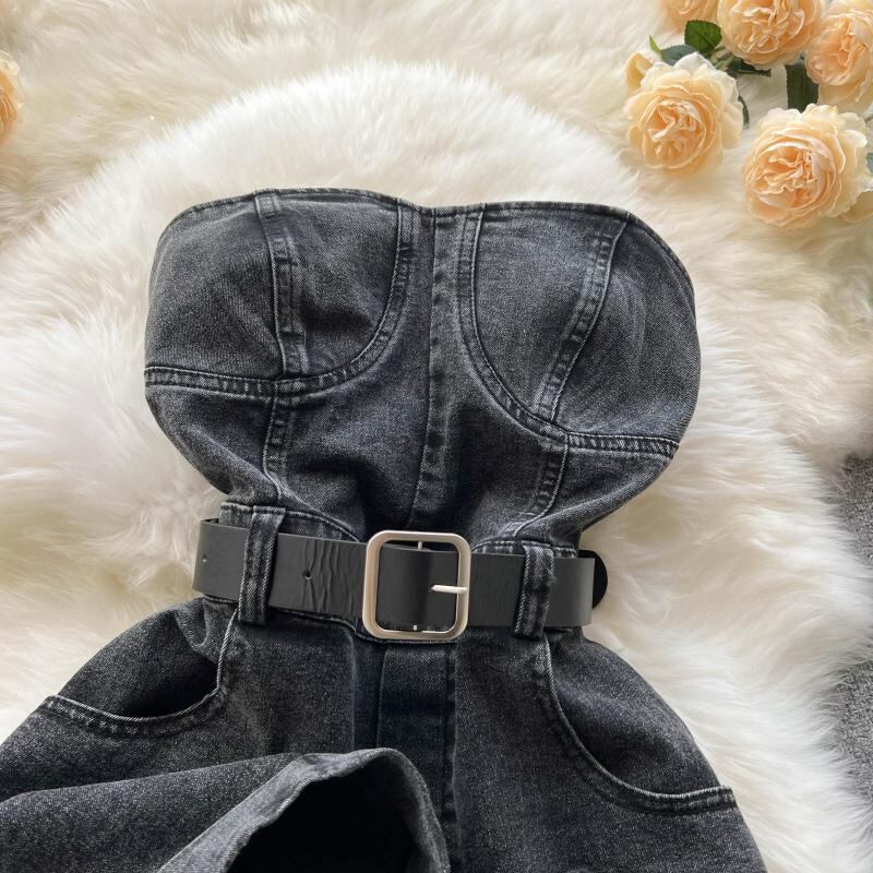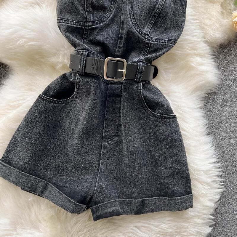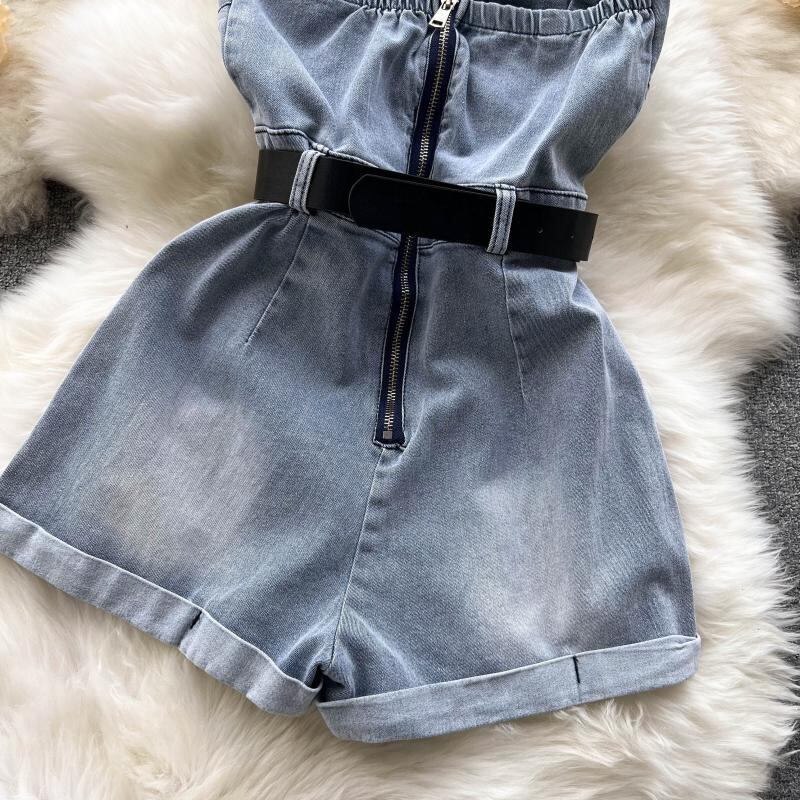 2022 spring new super sexy tube top denim jumpsuit women's backless curly jumpsuit wide-leg shorts スプリング 春物 ショーツ ブルマー lyxaj1594368583