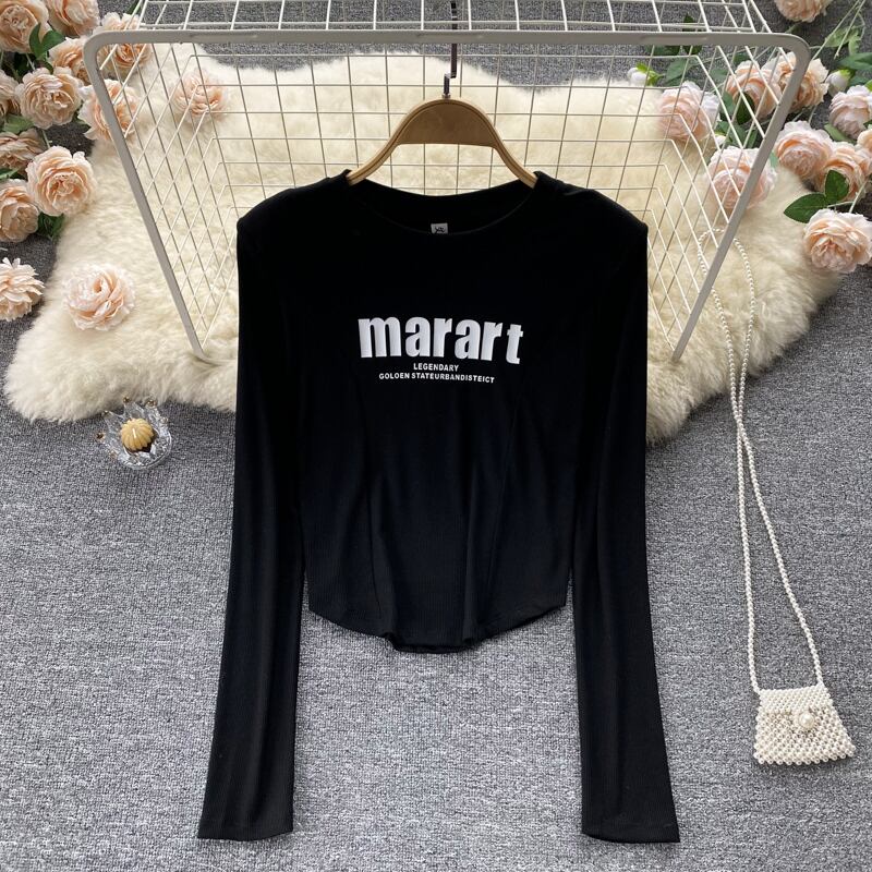 version short long-sleeved T-shirt women's 2022 spring new tops slim fit and thin fashion bottoming shirts ショート ロング シャツ スプリング 春物 スリム Tシャツ lyxaj66666303645