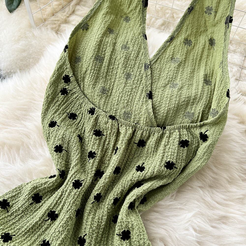 Summer new French romantic backless print V-neck halterneck tie irregular slim pleated hip dress プリーツ サマー 夏物 Vネック スリム lyxaj87864817494