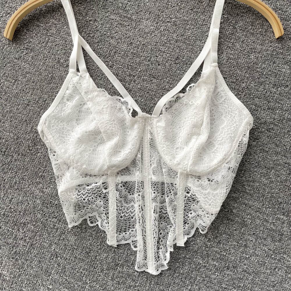 French niche design sense V neck strap vest lace bra top sexy beautiful back short suspender underwear ショート レース Vネック lyxaj95539690592