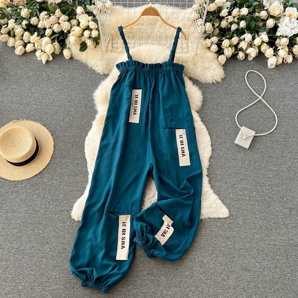 Loose and thin all-match overalls women's new twist shoulder straps letter patch tube top strap feet one-piece long pants trendy ロング lyxaj62534332121