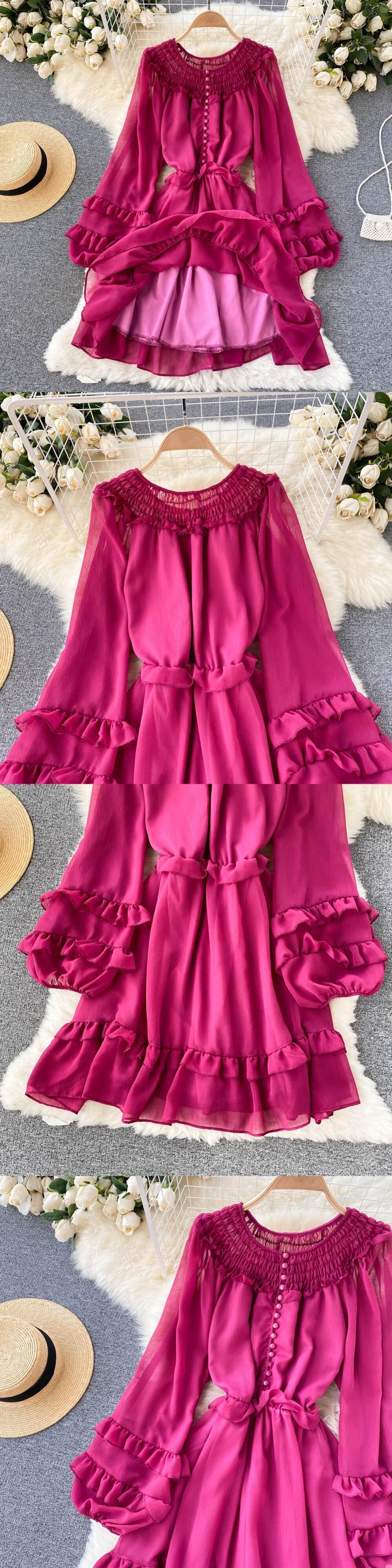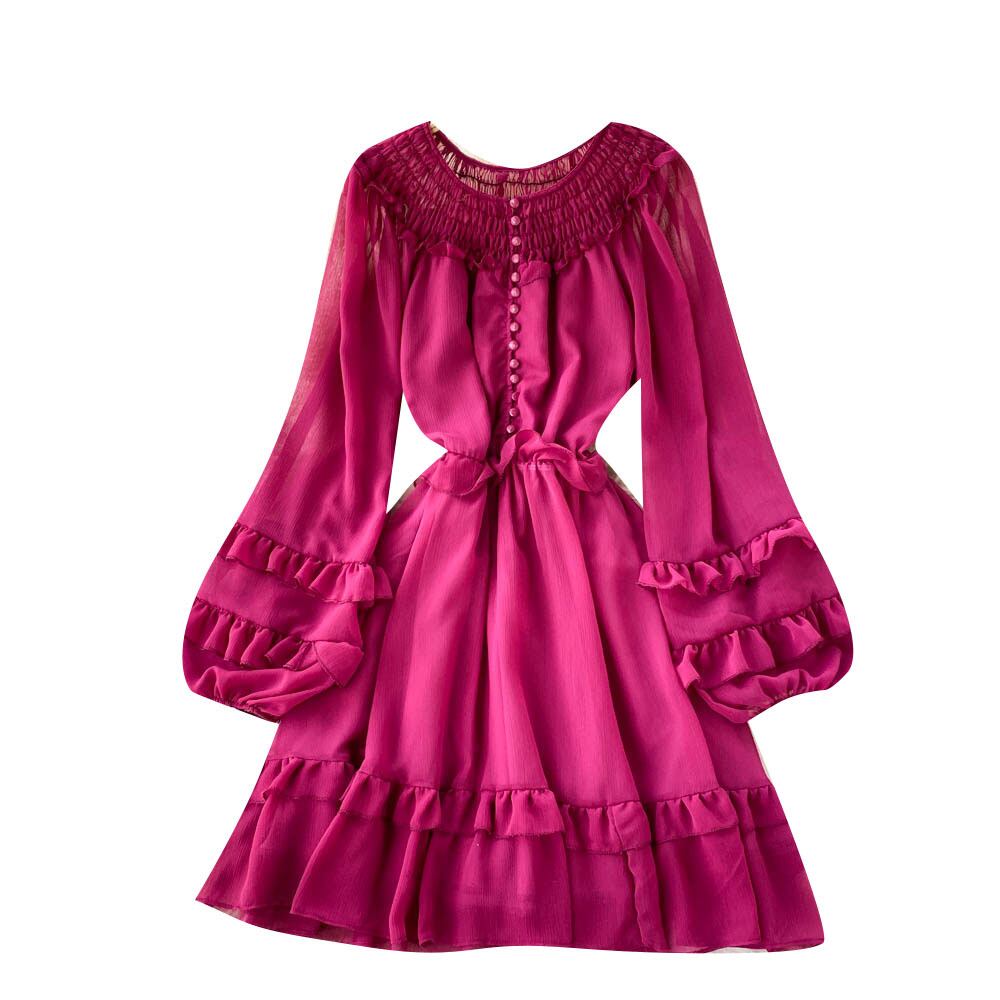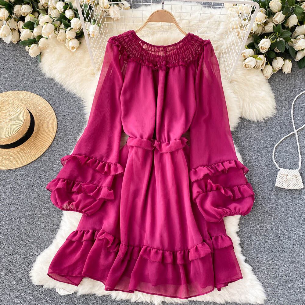 Hepburn style French dress waist slim, sweet temperament, age reduction, super fairy, small, ruffled A-line skirt 大人ガーリー スウィート キュート カジュアル スカート Aライン lyxaj964159842