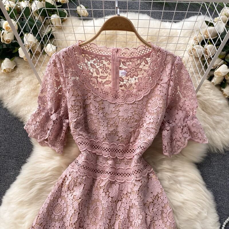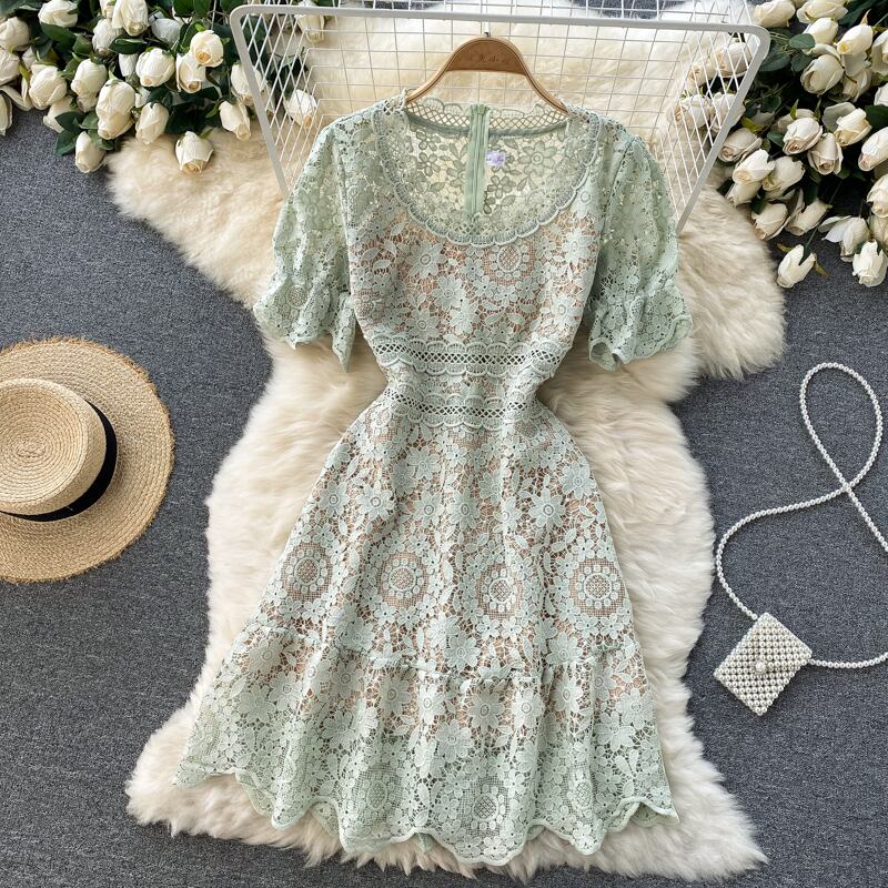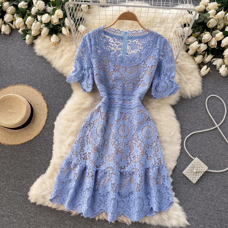 Celebrity style skirt high-end women's clothing 2021 new tide heavy industry hollow lace ruffled palace style dress レース スカート lyxaj99570216179