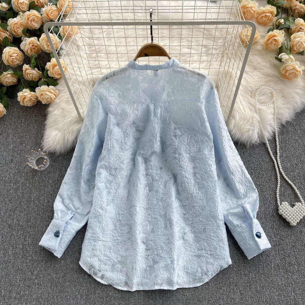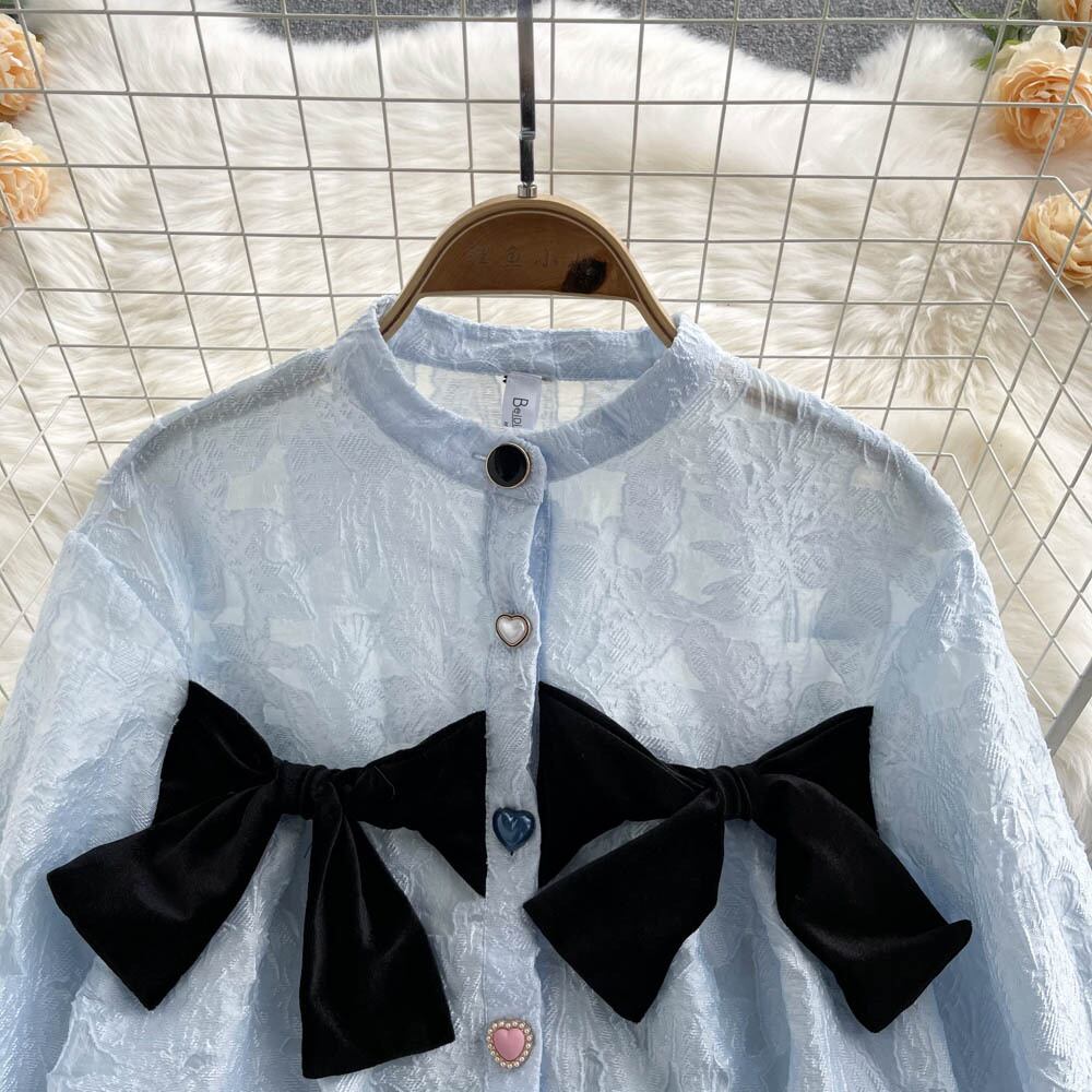 French Chic Top Spring Autumn 2021 Bow Knot Sensation Small Standing Collar Single Breasted Loose Shirt リボン スプリング 春物 オータム 秋物 lyxaj95225663979