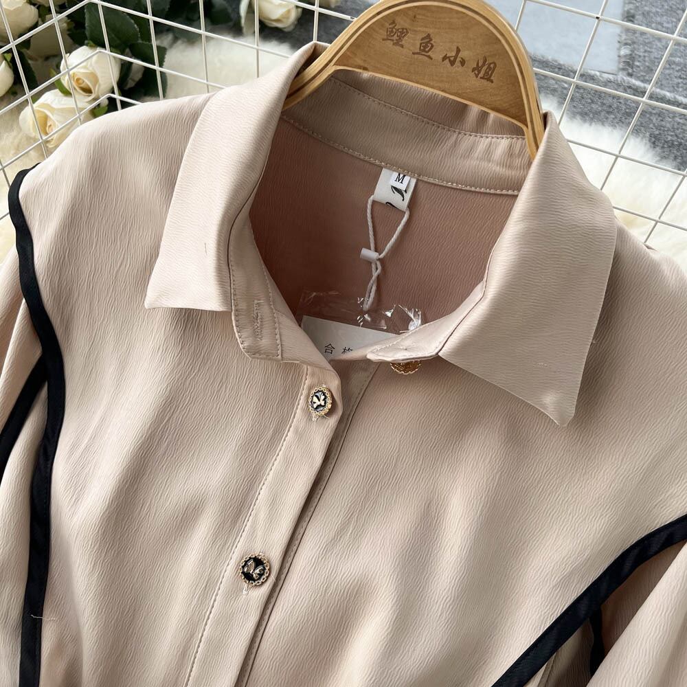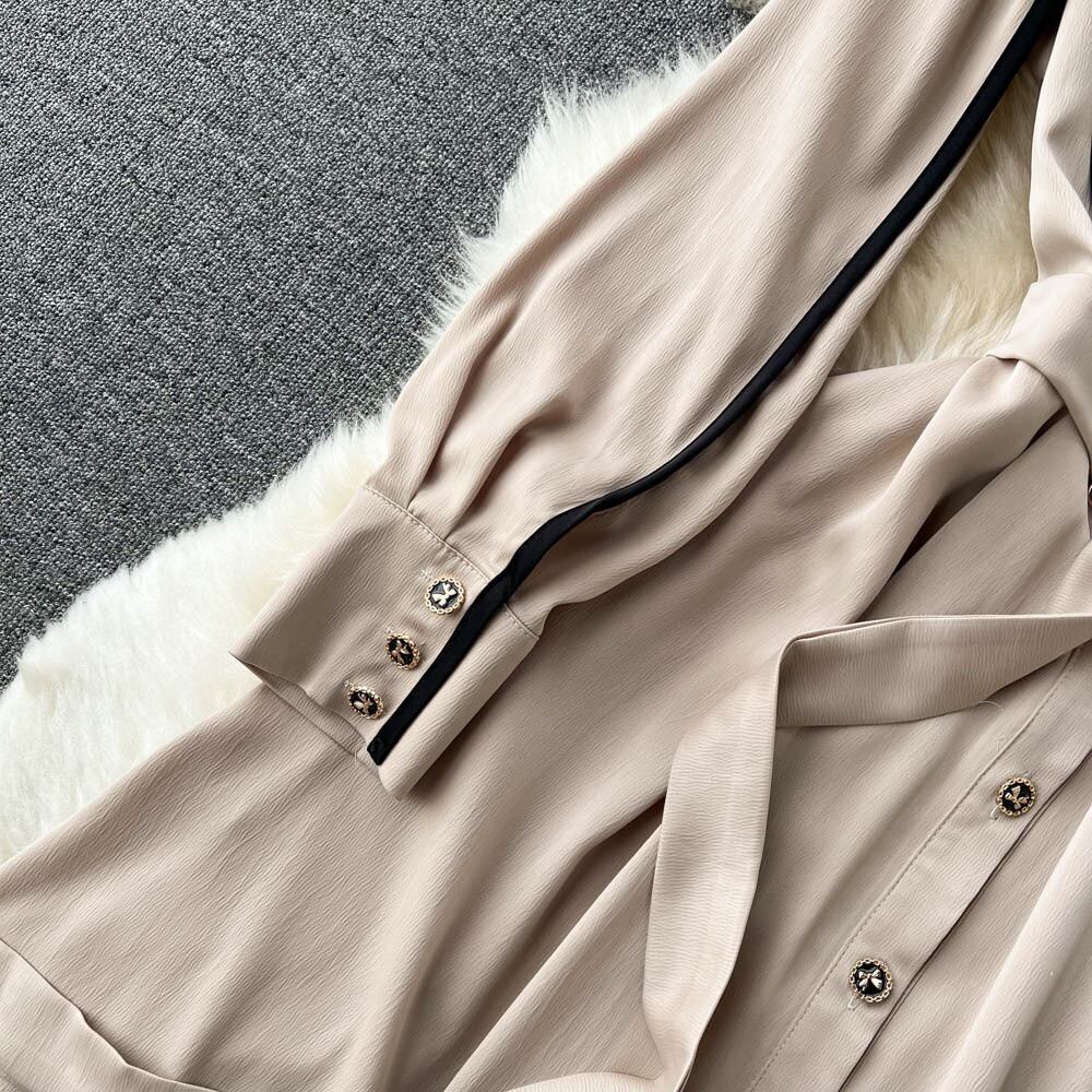2022 spring new ladies temperament waist and thin one-piece shirt dress Hepburn style small black dress ブラック スプリング 春物 lyxaj33931116192
