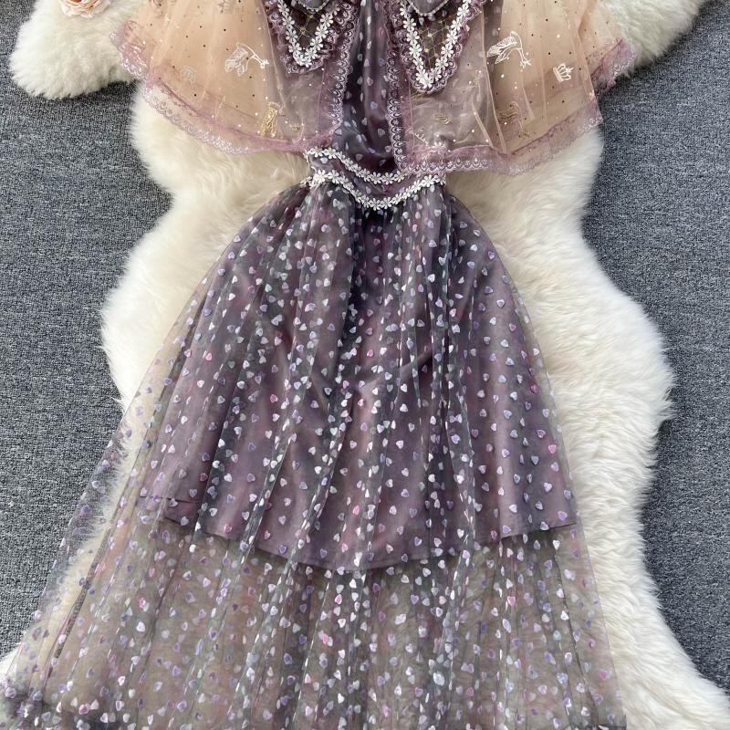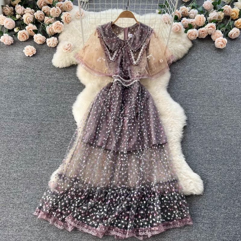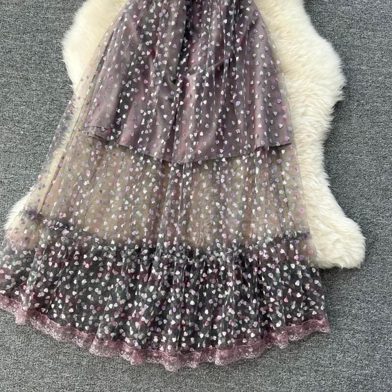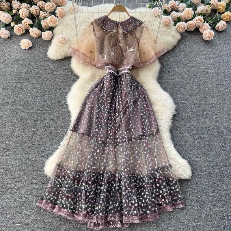 Heavy industry embroidery design sense niche European and American mesh lace lotus leaf high waist slim doll skirt retro dress ハイウェスト レトロ レース 刺繍 メッシュ スカート スリム ヨーロピアン lyxaj71489212747