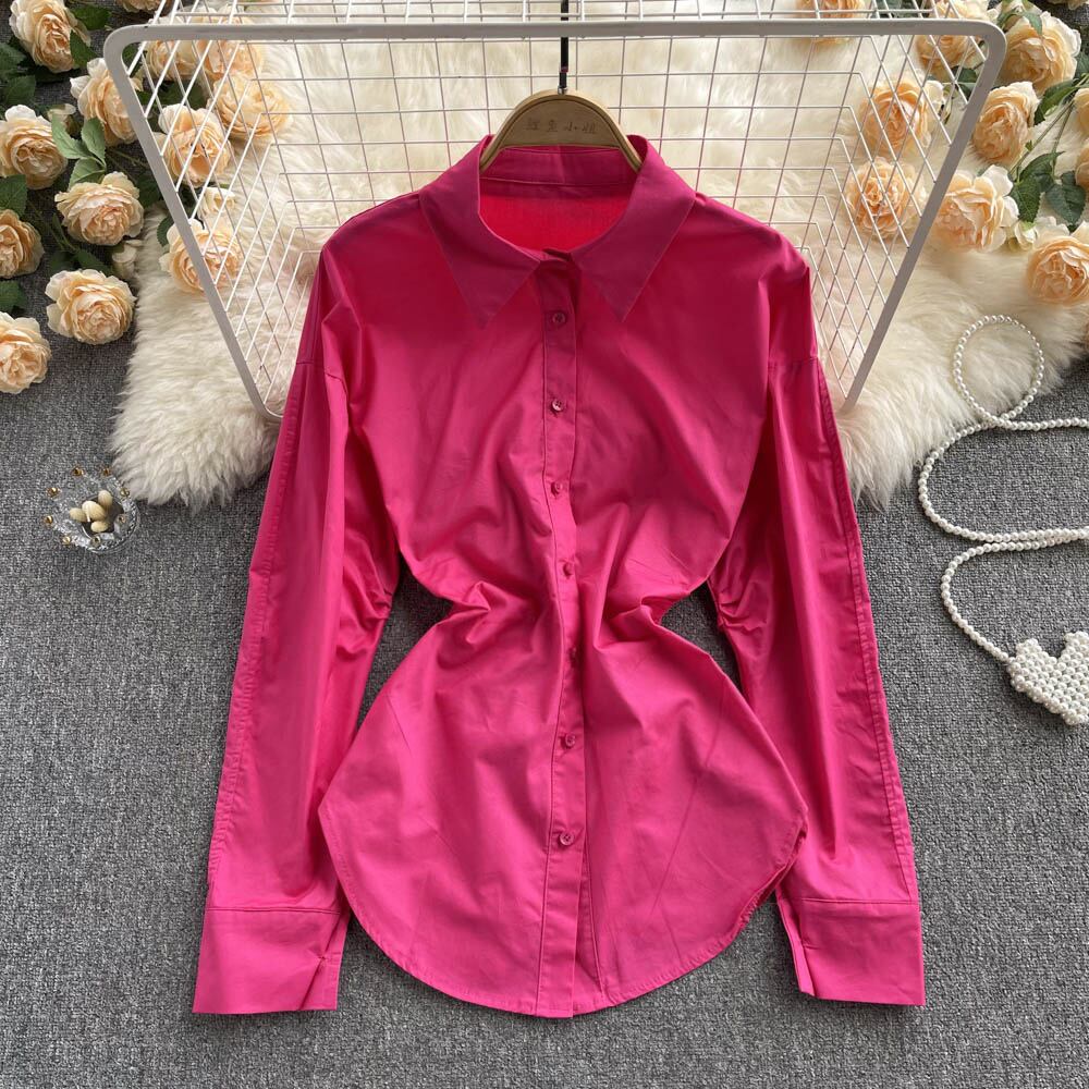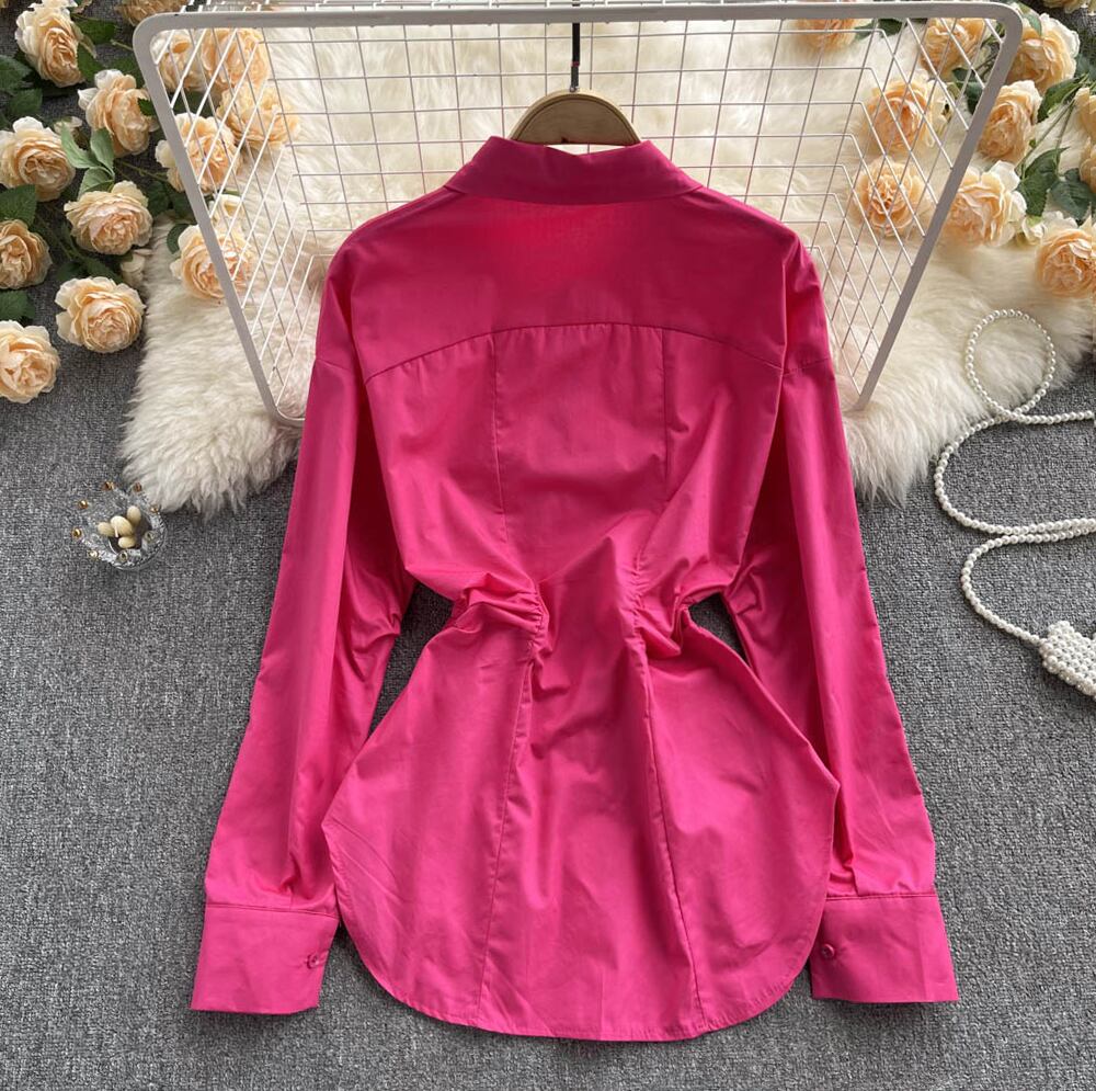 Hong Kong style casual shirt women's spring and autumn new waist and thin lapel breasted version loose all-match long-sleeved top ロング カジュアル スプリング 春物 オータム 秋物 lyxaj643786753