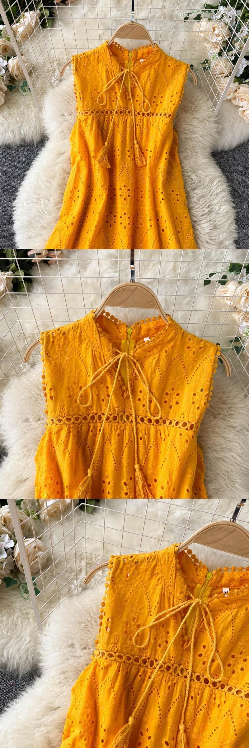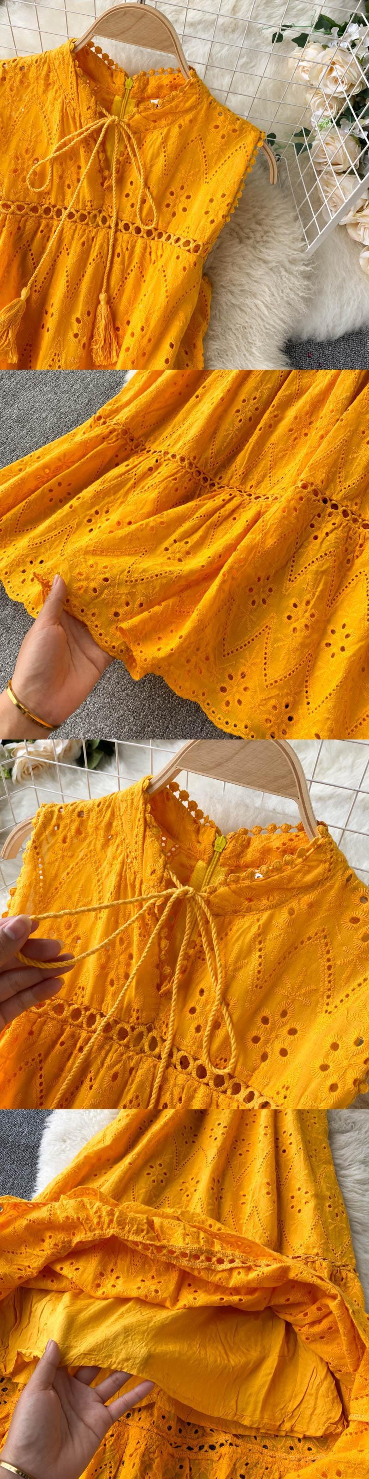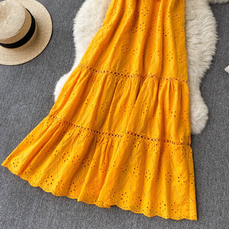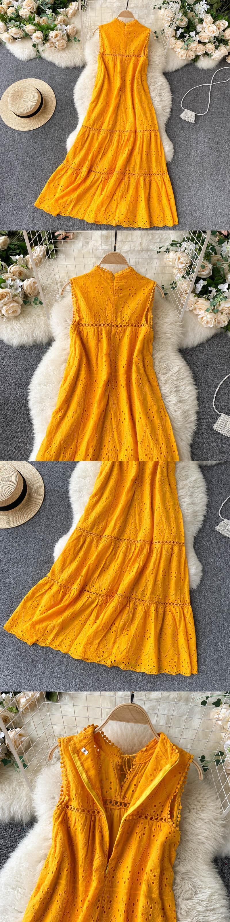 Bohemian dress female summer design sense niche hollow A-line long holiday skirt sleeveless vest skirt trendy ロング サマー 夏物 ノースリーブ スカート Aライン lyxaj1960454109