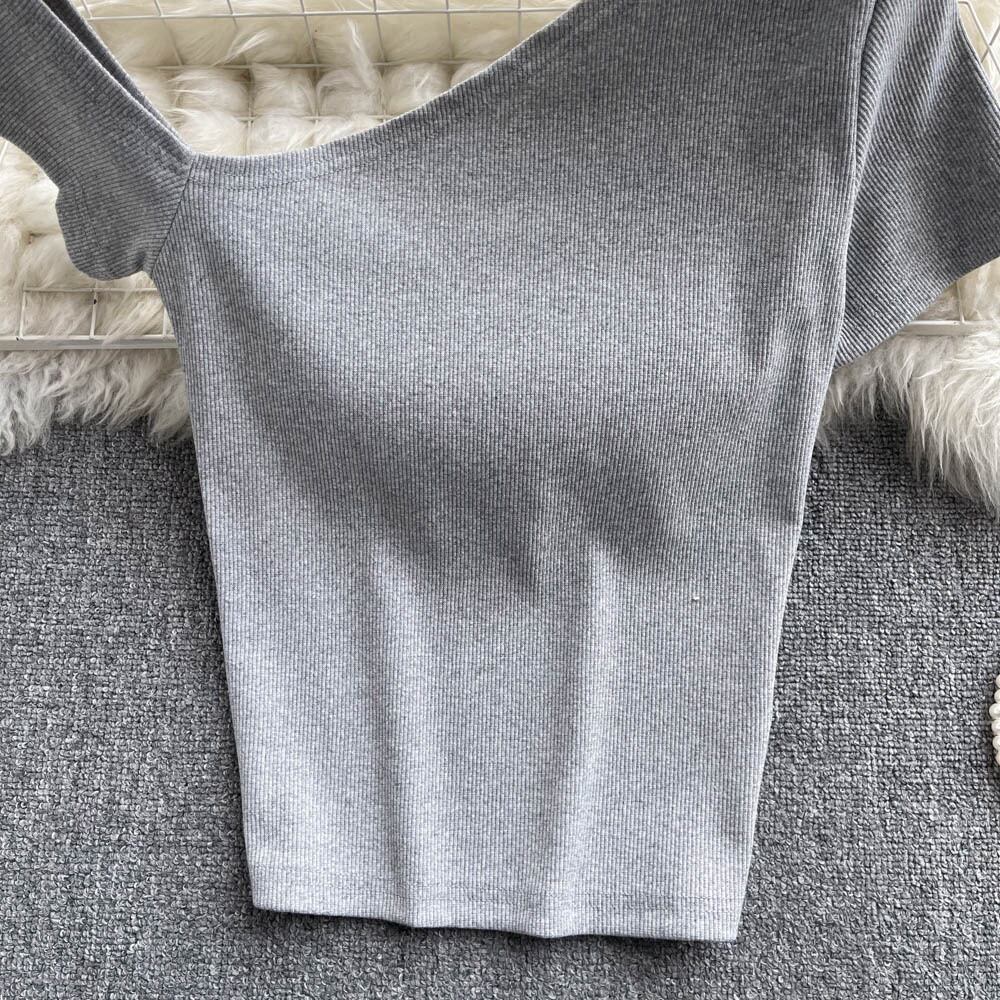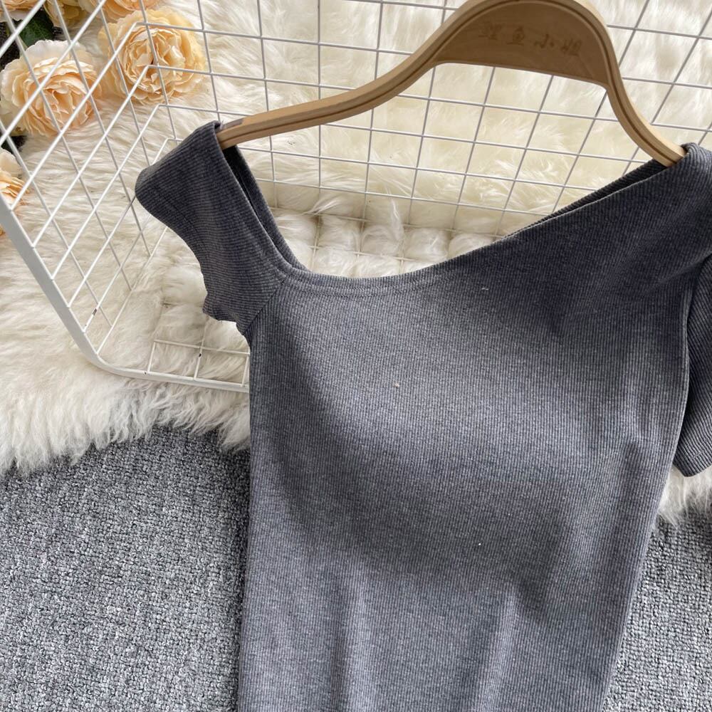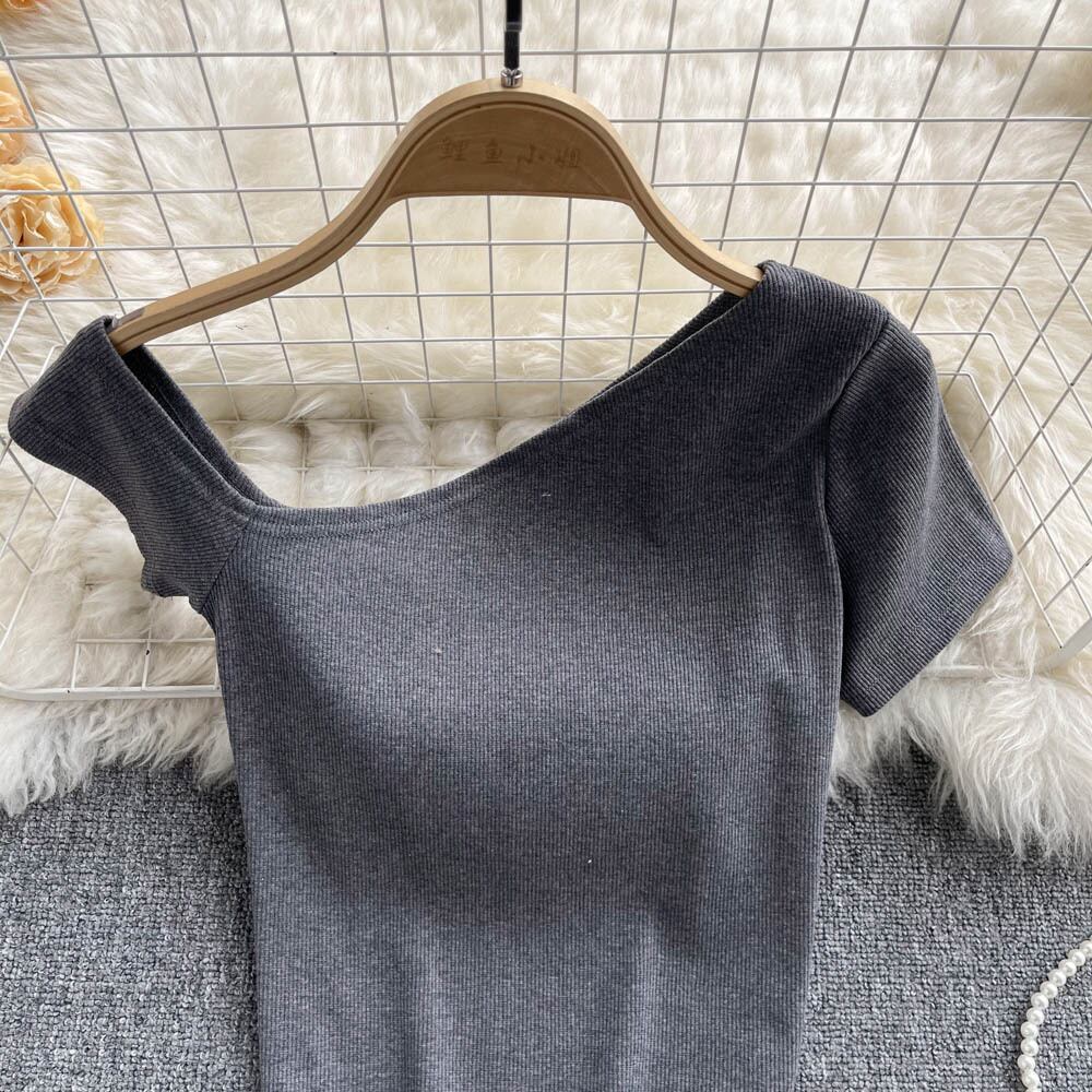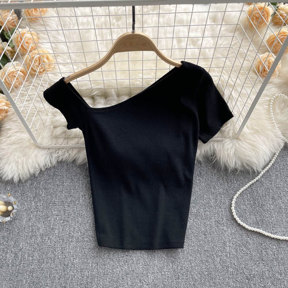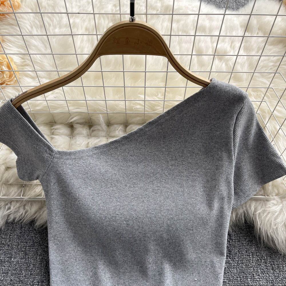 Short crop top solid color t-shirt women's summer dress pure cotton short-sleeved high waist design niche T-shirt women's chic top ハイウェスト ショート コットン サマー 夏物 Tシャツ ピュア ソリッドカラー lyxaj69576747362