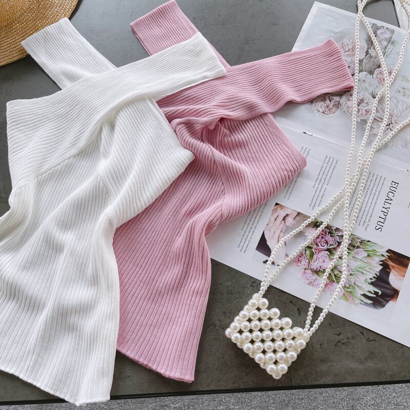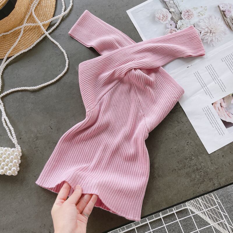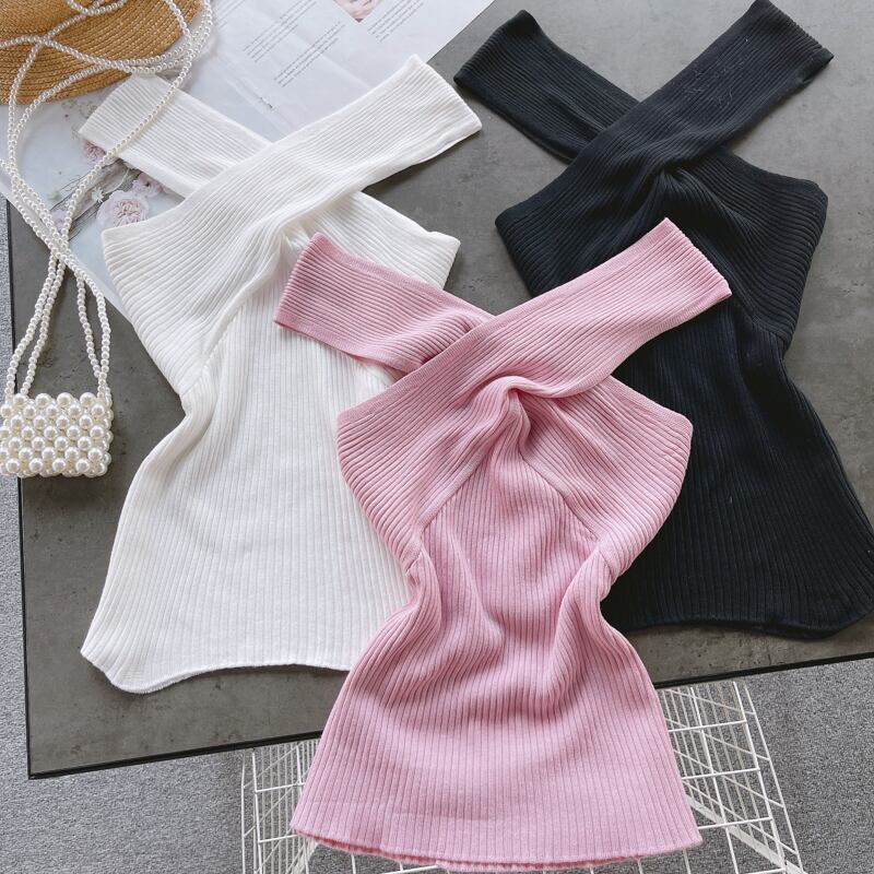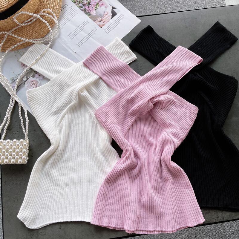 Net red fried street summer women's design sense niche cross V-neck slim short all-match knitted top women's vest ショート レッド ストリート サマー 夏物 Vネック スリム lyxaj1509050668