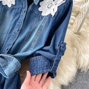 Flower stitching design skirt light familiar style denim dress women's autumn and winter new waist A-line long skirt ロング オータム 秋物 ウィンター 冬物 スカート Aライン フラワーデザイン ステッチ lyxaj54680922272