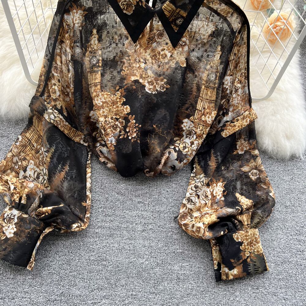 Palace style shirt women's autumn 2021 new women's shirt design sense lantern sleeves all-match chiffon top trend ランタンスリーブ シフォン レース オータム 秋物 lyxaj74067118892