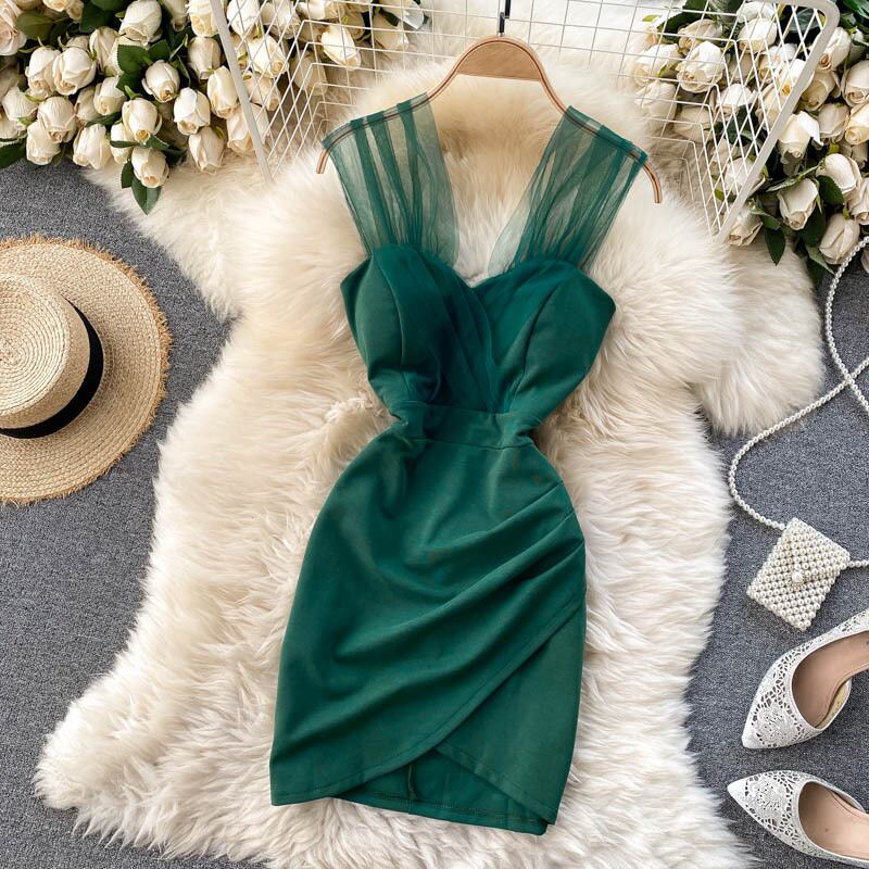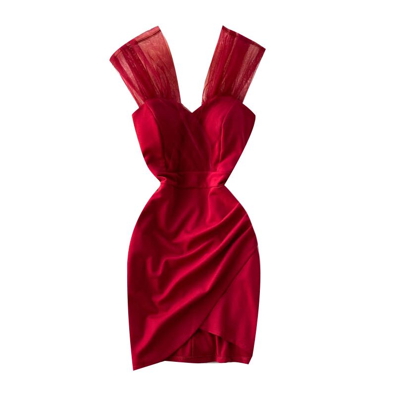 Celebrity small dress skirt color matching wearable design mesh stitching tube top style scheming pleated short dress ショート プリーツ メッシュ スカート ステッチ lyxaj92469474663