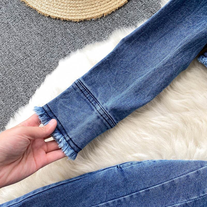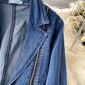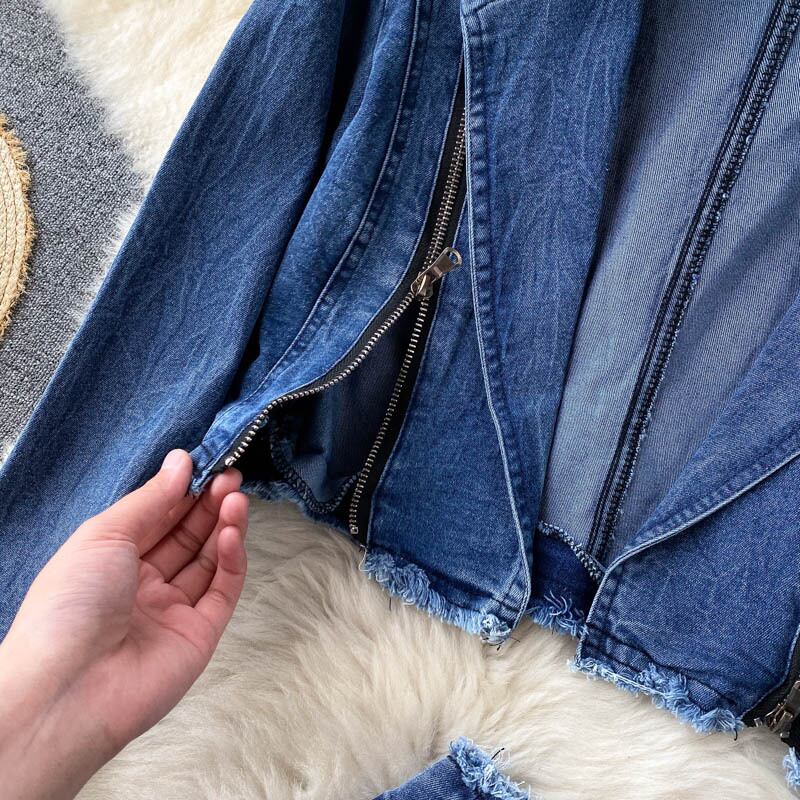 version of the personality wild straight loose wide-leg pants + zipper long-sleeved short jacket fried street denim suit two-piece ショート ロング ストリート lyxaj39510373308