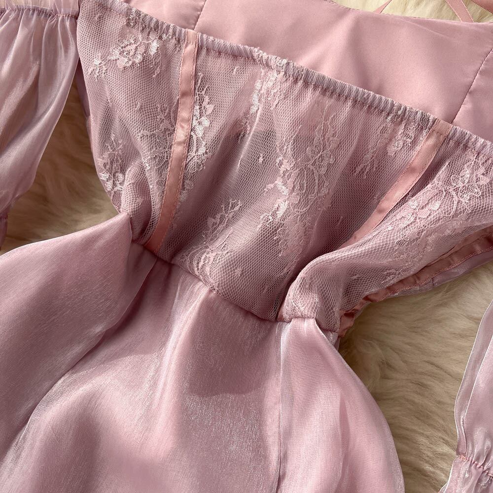 Dress women's one-shoulder puff sleeves French purple irregular short-sleeved mid-length summer sexy hip skirt サマー 夏物 スカート パープル lyxaj76993998557