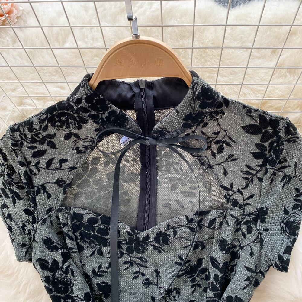 Summer new design sense niche sexy retro modified Chinese hollow slit cheongsam print dress レトロ サマー 夏物 lyxaj12720681116