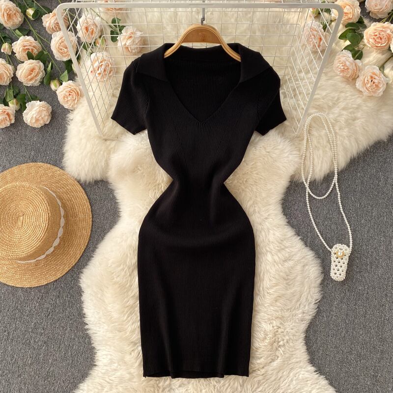 2022 summer new version temperament V-neck simple solid color slim fit slim sexy fashion hip knitted dress サマー 夏物 Vネック スリム ソリッドカラー lyxaj86952075512