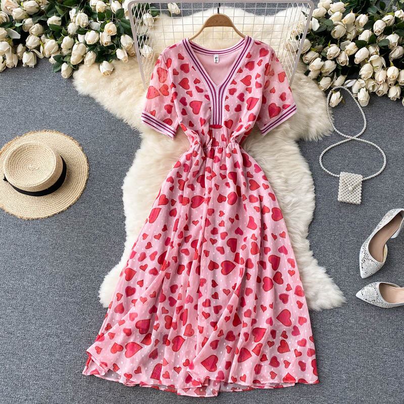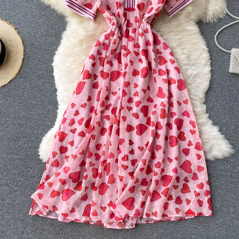 French First Love Skirt Sense Small Irregular Sweet Love Print Slim Fit Mid-Length Gentle Dress 大人ガーリー スウィート キュート カジュアル スカート スリム lyxaj64488474669