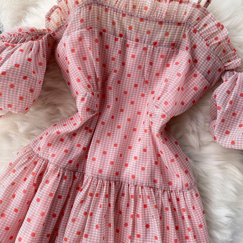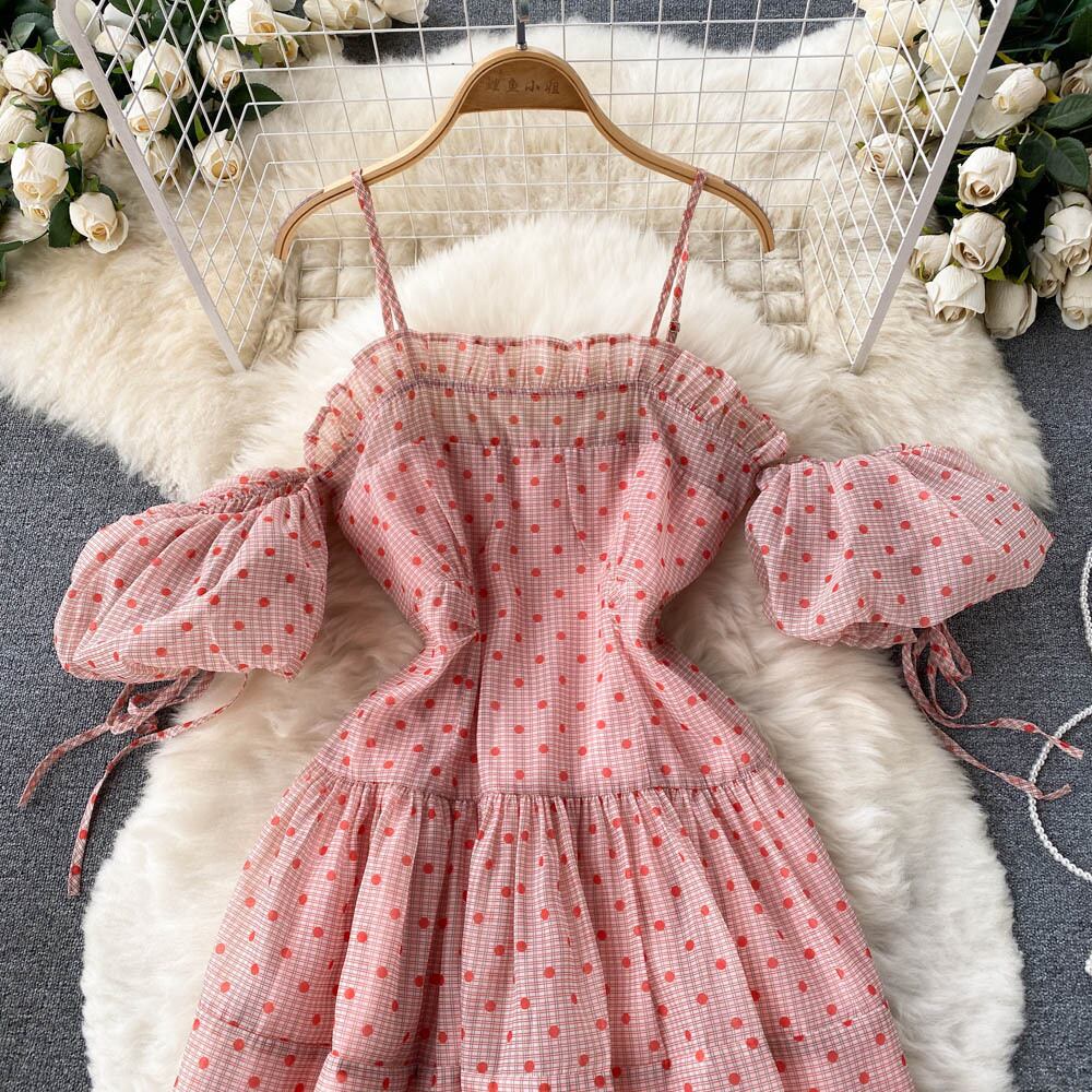Sweet and spicy French polka dot suspender dress niche summer Sanya seaside vacation super fairy sweet beach skirt female 大人ガーリー スウィート キュート カジュアル サマー 夏物 ビーチ スカート lyxaj76401724191