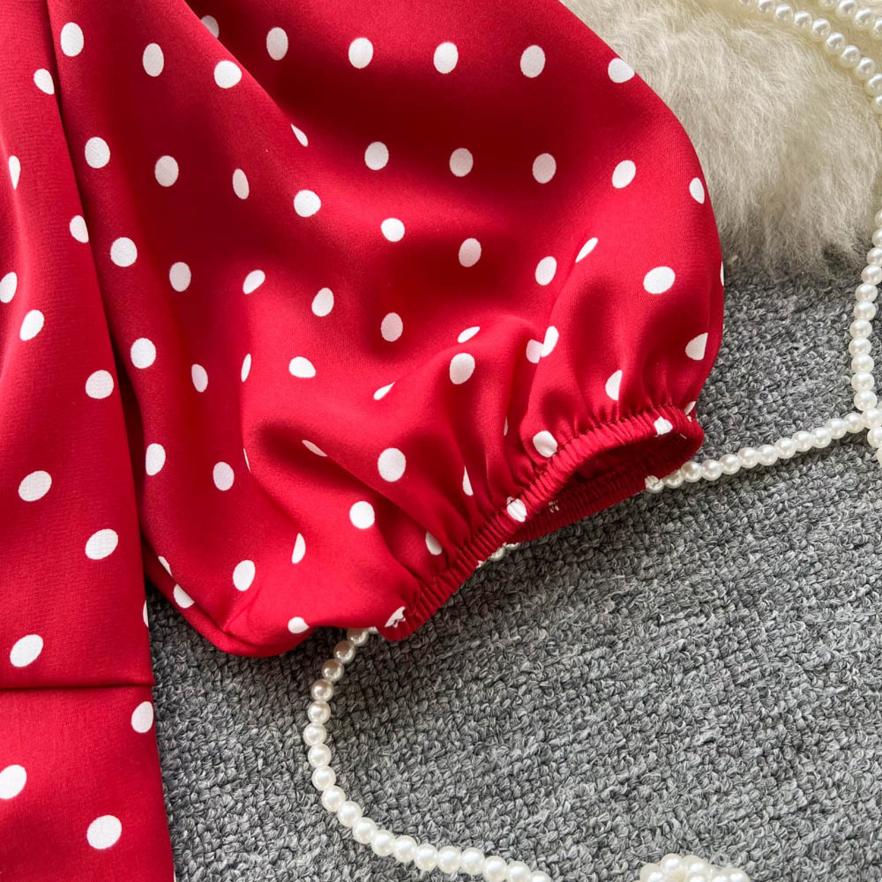 Polka dot net red niche French retro sweet chiffon shirt women's 2022 summer new bow princess shirt top レッド シフォン リボン レトロ 大人ガーリー スウィート キュート カジュアル サマー 夏物 lyxaj61568548143