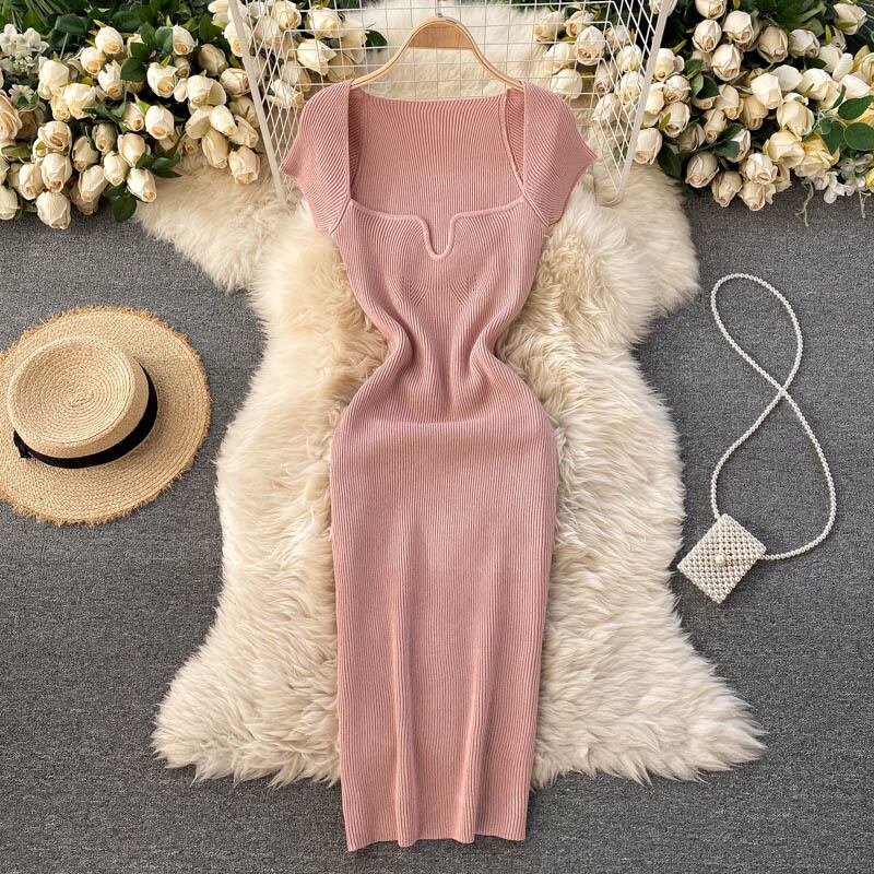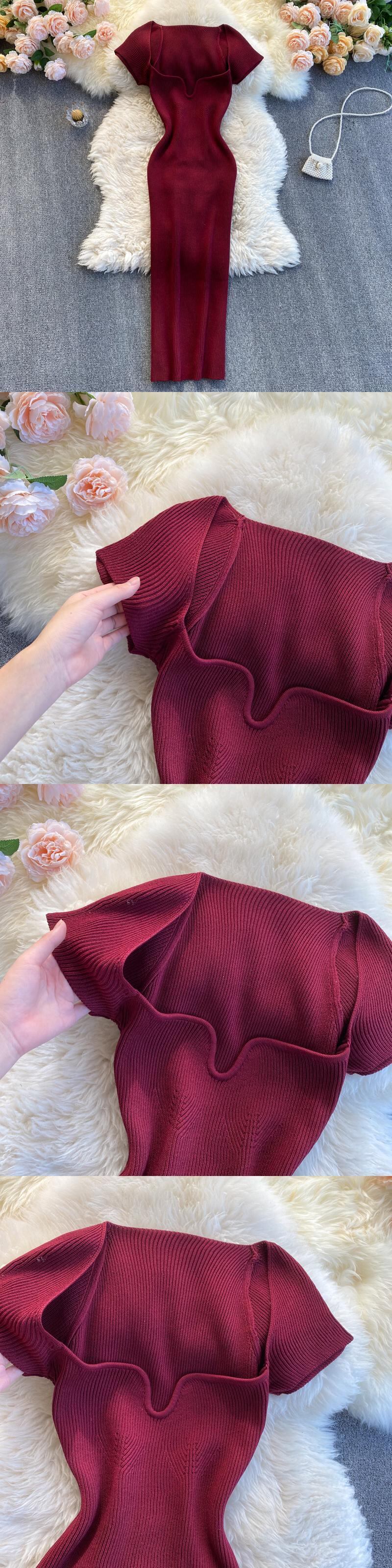 European and American ins fashion bloggers private clothes sexy low-neck elastic waist and hip knitted dress women's spring and summer new エラスティック 伸縮 スプリング 春物 サマー 夏物 ヨーロピアン lyxaj95567602148