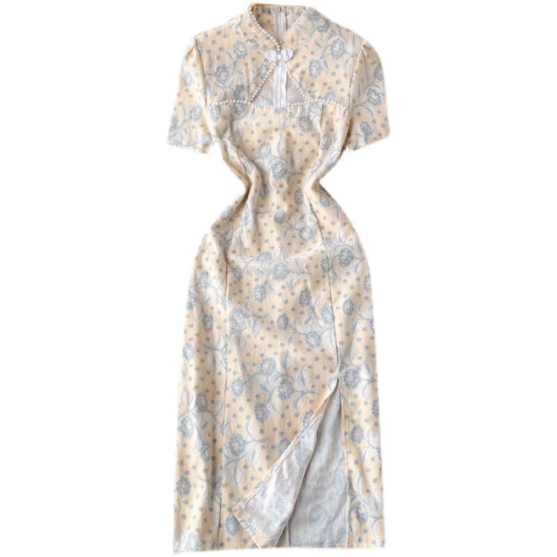 2022 spring new Chinese style beaded bag hip mid-length slit improved young cheongsam dress スプリング 春物 lyxaj44352541865