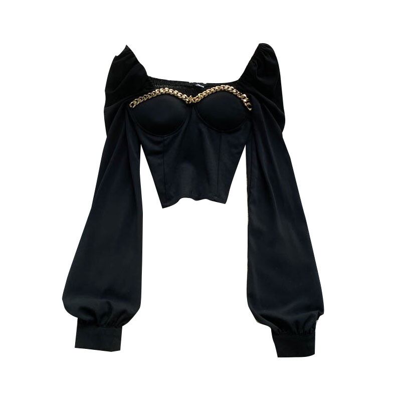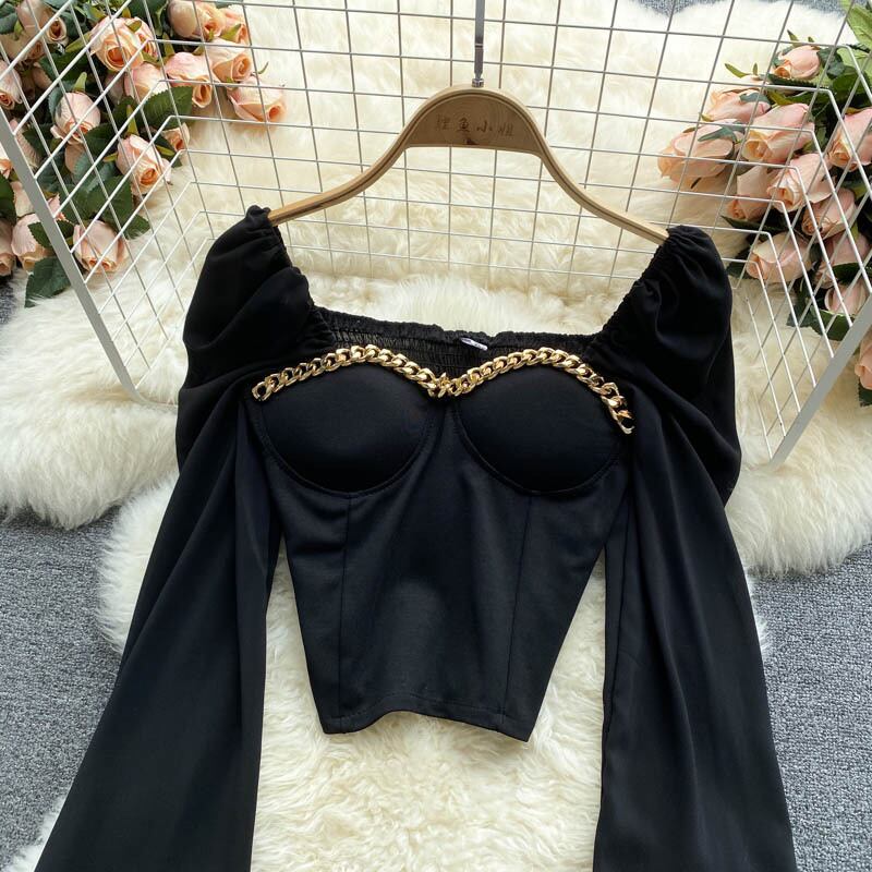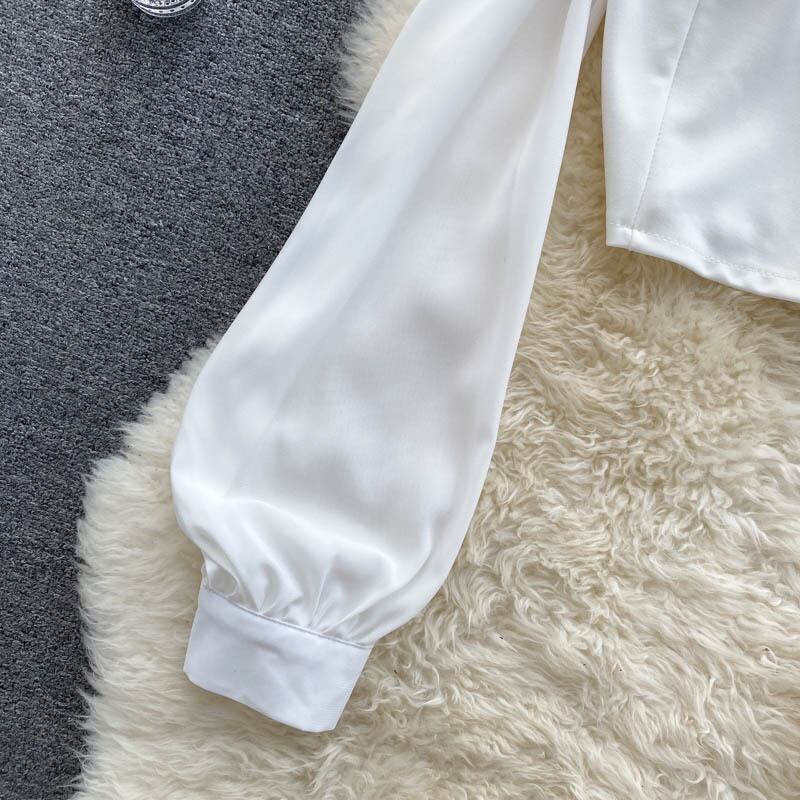 Court style top women's design sense retro heavy industry diamond-studded slim short section scheming clavicle ladies temperament bottoming shirt ショート レトロ スリム lyxaj70835695464