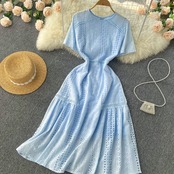 2022 new small fresh literary dress ish temperament through waist a-line loose pleated mid-length skirt プリーツ スカート Aライン lyxaj98531825973