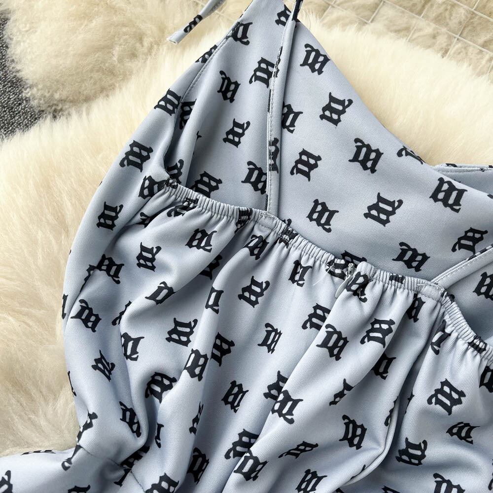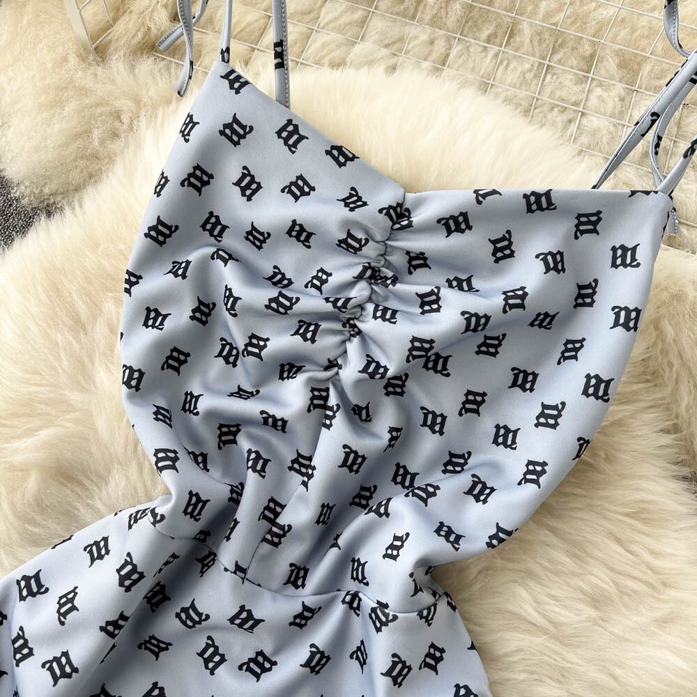 Holiday style tube top suspender dress summer new irregular slim fit slim side slit pleated printed long skirt ロング プリント プリーツ サマー 夏物 スカート スリム lyxaj76860274982