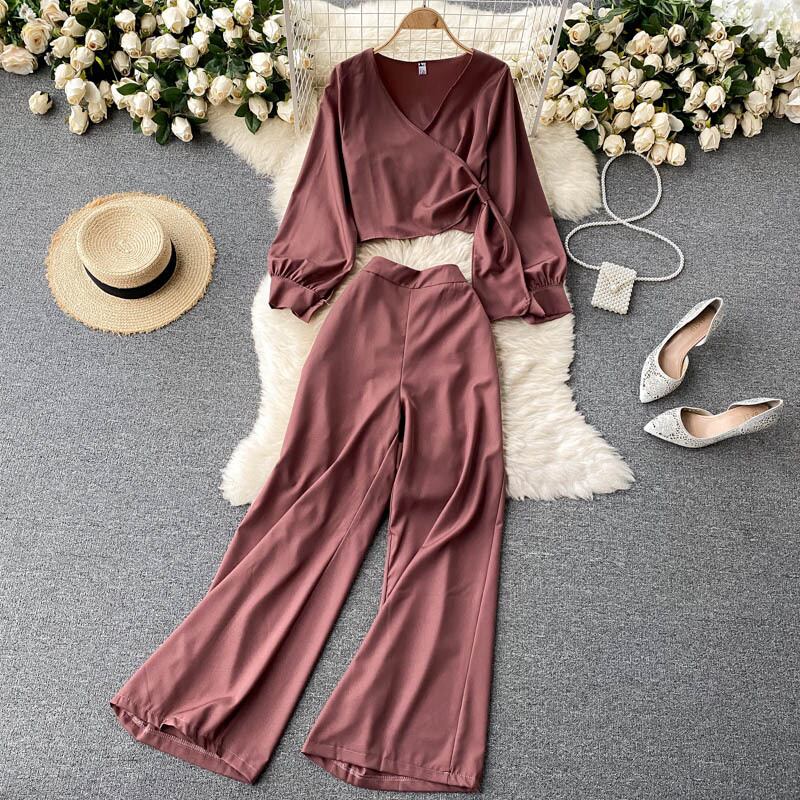 Royal sister style suit 2020 new women's design short top all-match high-waist wide-leg pants fashionable two-piece set ショート lyxaj24634283585