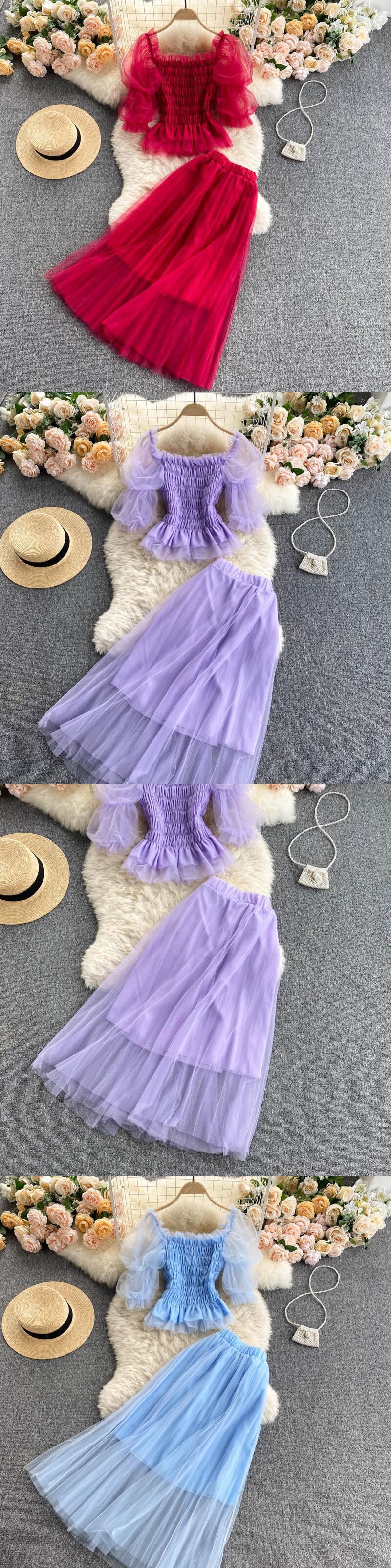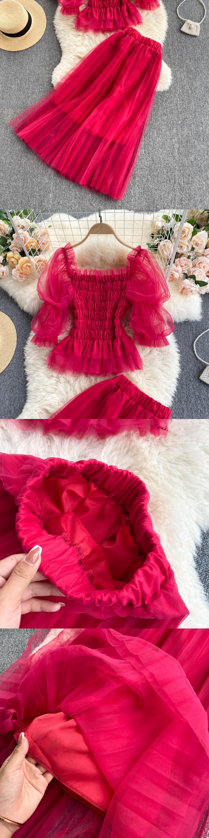 Xianqi celebrity temperament suit 2021 new women's short top sweet mesh skirt two-piece age reduction ショート 大人ガーリー スウィート キュート カジュアル メッシュ スカート lyxaj56563715118