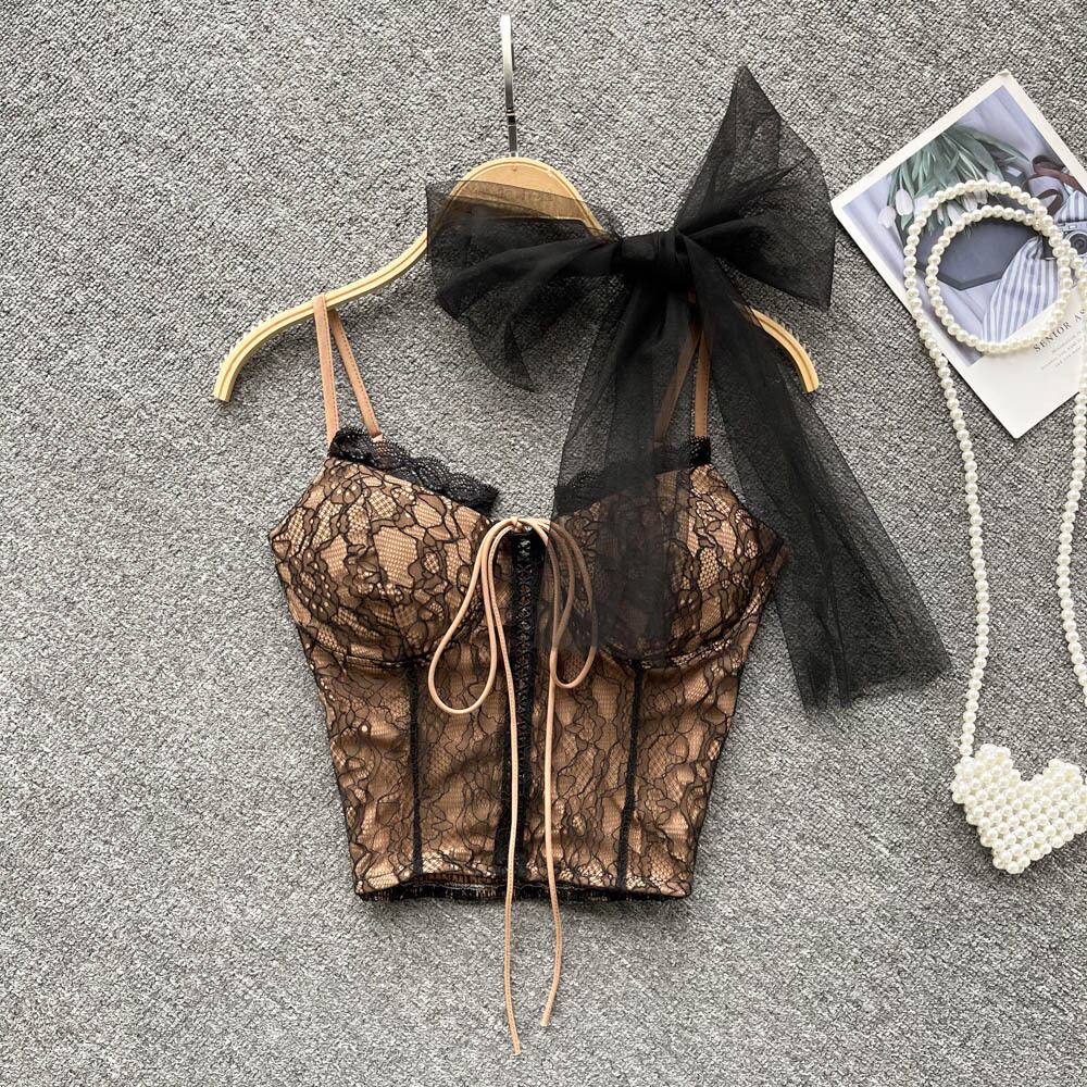 European and American ins bandage design sense niche outside wear camisole women wear fashionable fashion short lace top ショート レース ヨーロピアン lyxaj52645300984
