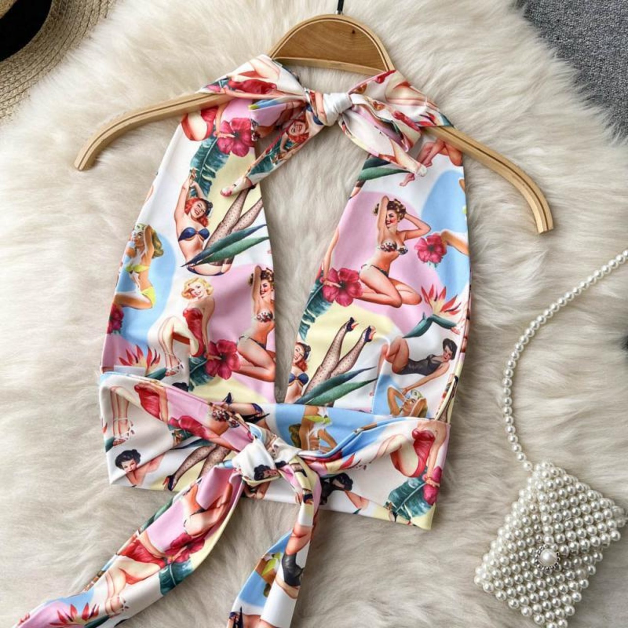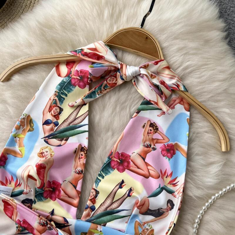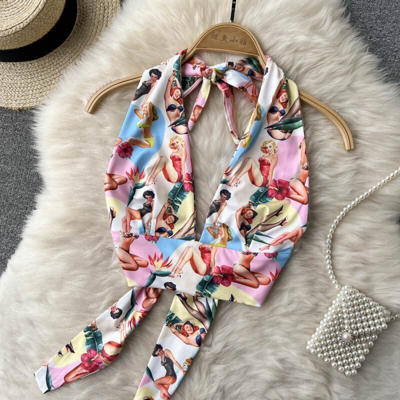European station ins net red deep V-neck halter strap printing slim short small camisole top corset tide brand ショート レッド コルセット Vネック スリム ヨーロピアン lyxaj50599683474