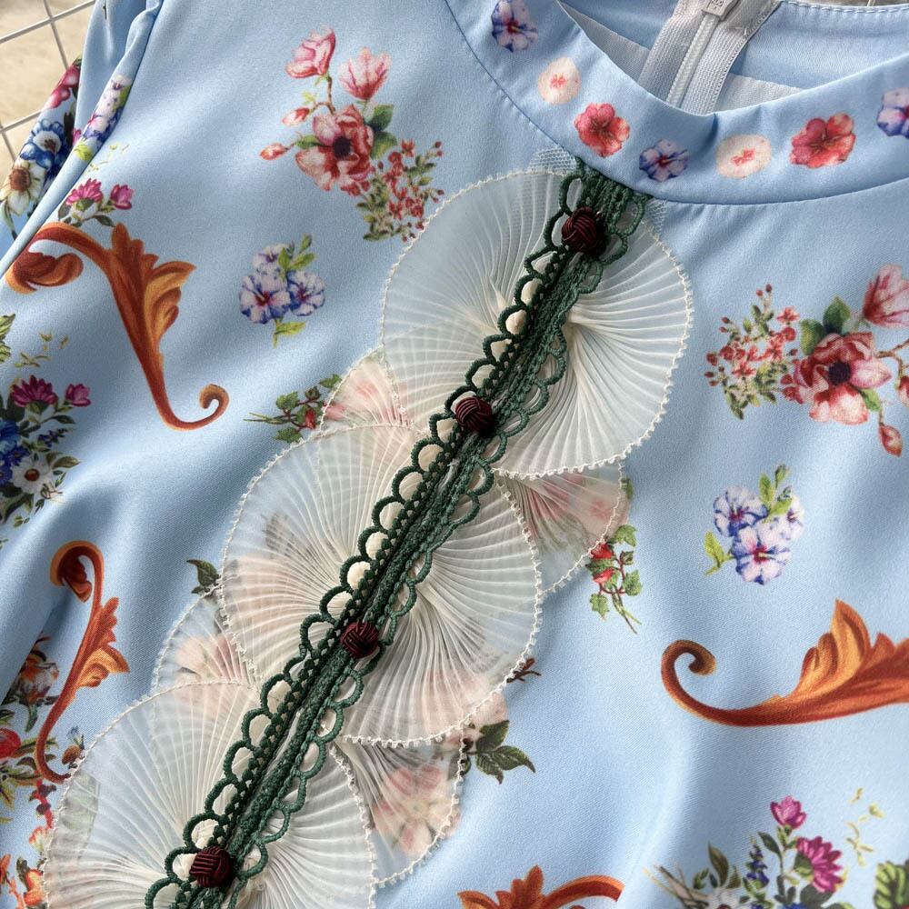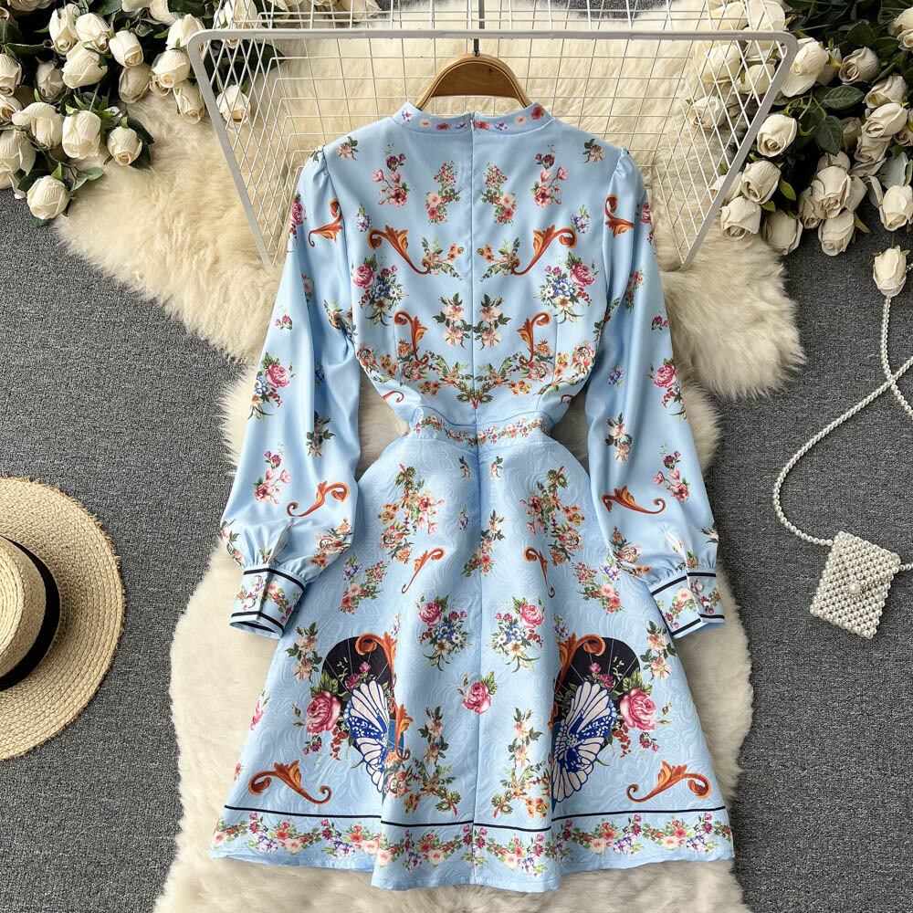 Court style retro stunning skirt high-quality stand-up collar print waist slim temperament A-line dress small レトロ スカート Aライン スリム lyxaj69300050681