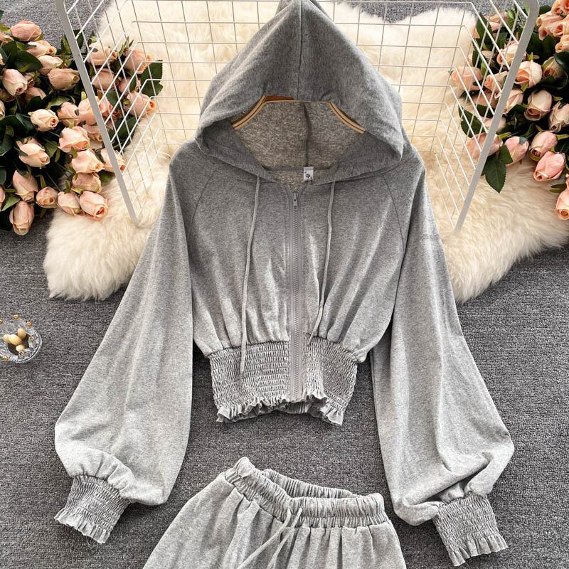 Net red sports suit women's design sense zipper cardigan jacket short all-match high-waist wide-leg pants fashionable two-piece suit ショート レッド カーディガン lyxaj18921068186