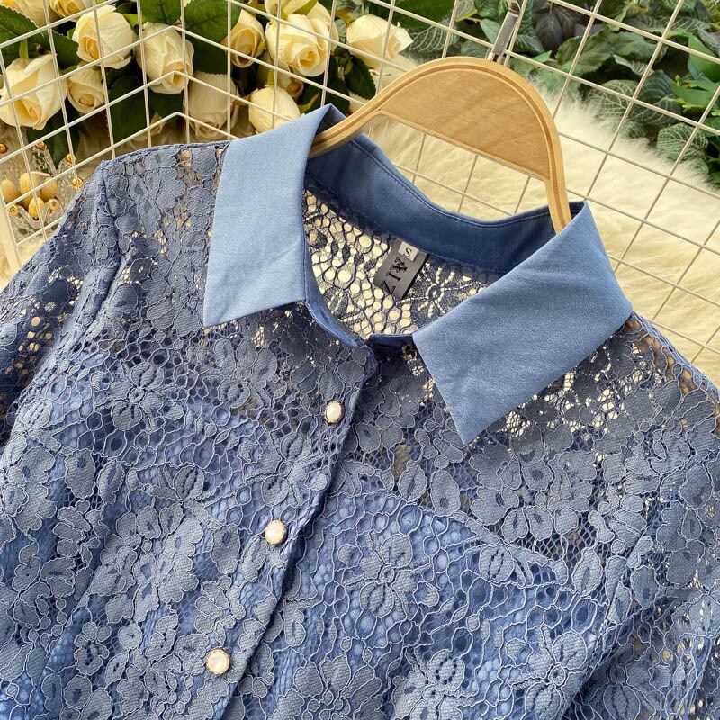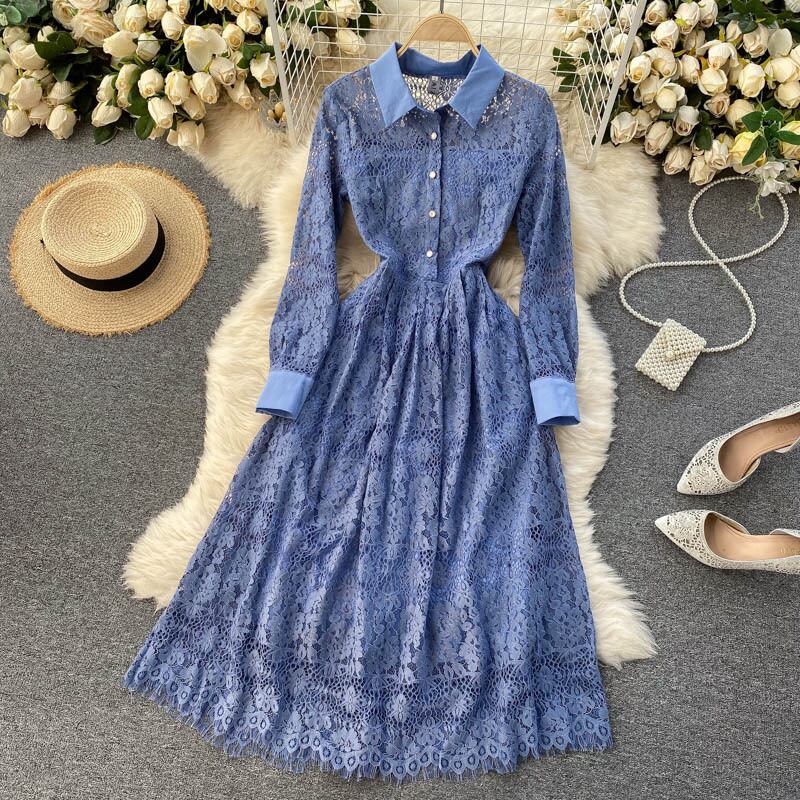 European and American retro evening dress high-end dress lapel long-sleeved heavy work hollow embroidery hook flower slim skirt ロング レトロ 刺繍 スカート スリム フラワーデザイン ヨーロピアン lyxaj4371243750