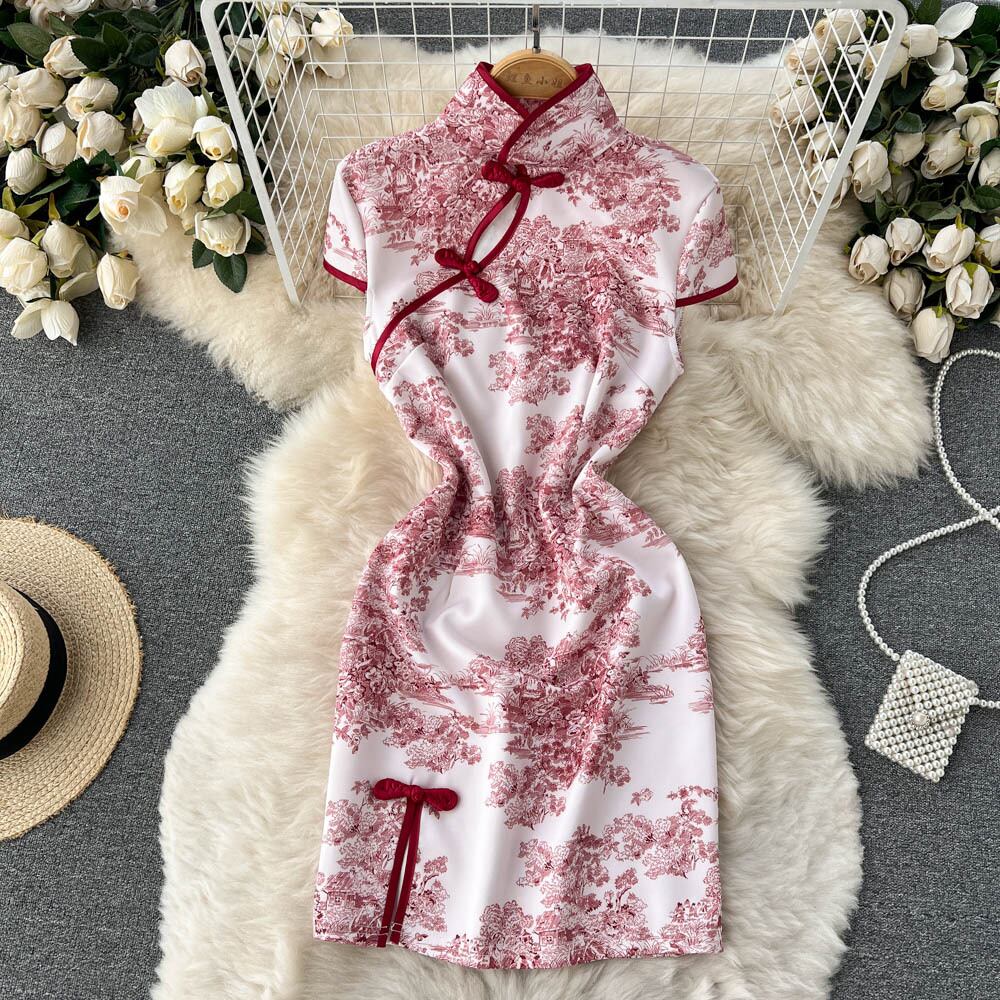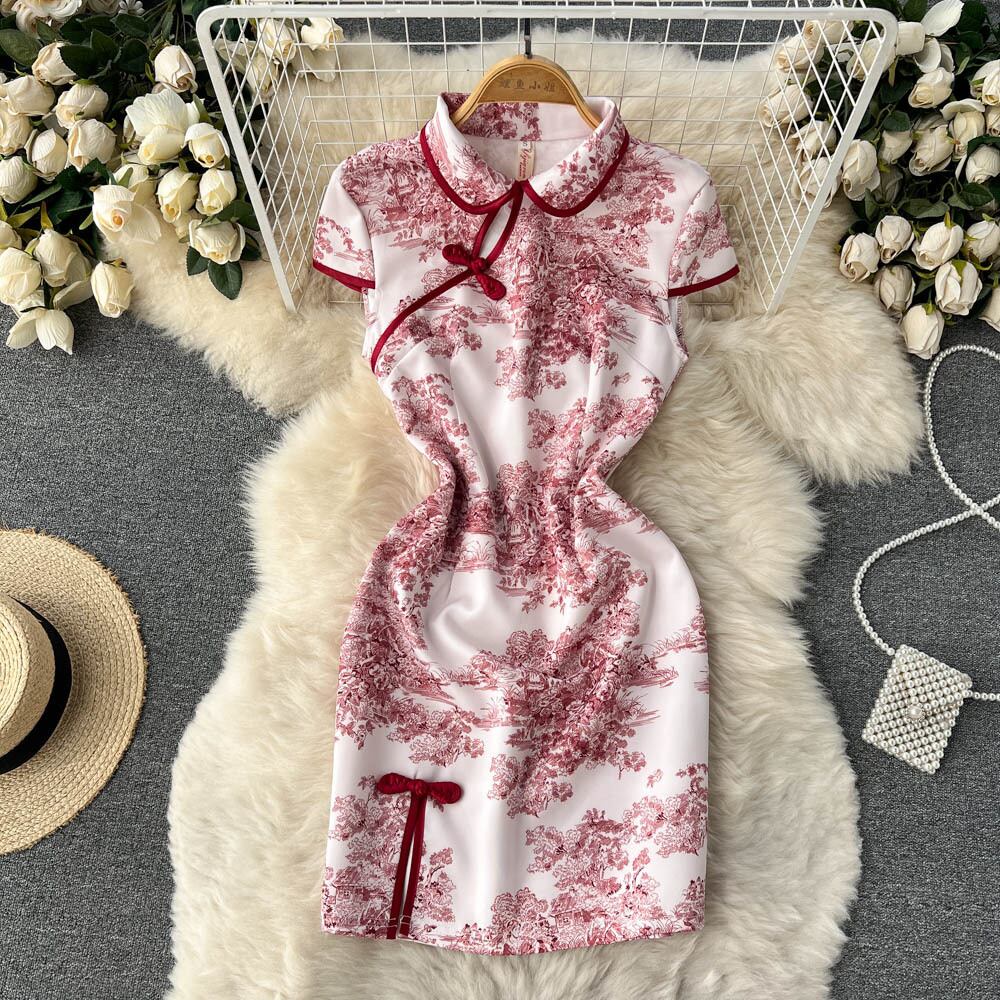 2022 summer new retro temperament mid-length improved cheongsam Chinese style y slim hip dress レトロ サマー 夏物 スリムヒップ スリム lyxaj79089081886