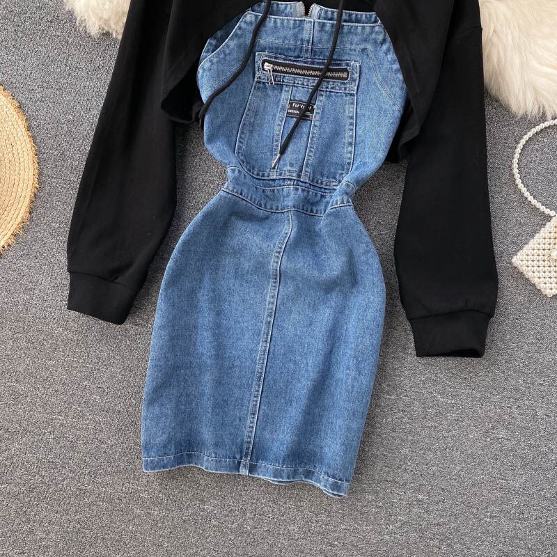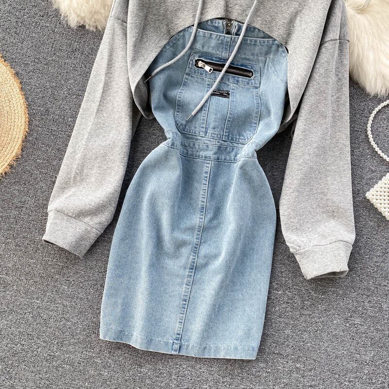 suit 2020 new women's sweater design sense outside with short denim suspender dress two-piece set ショート lyxaj3200952970