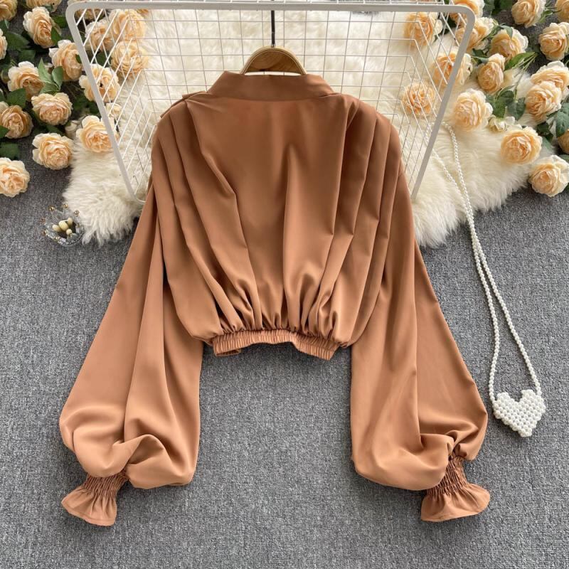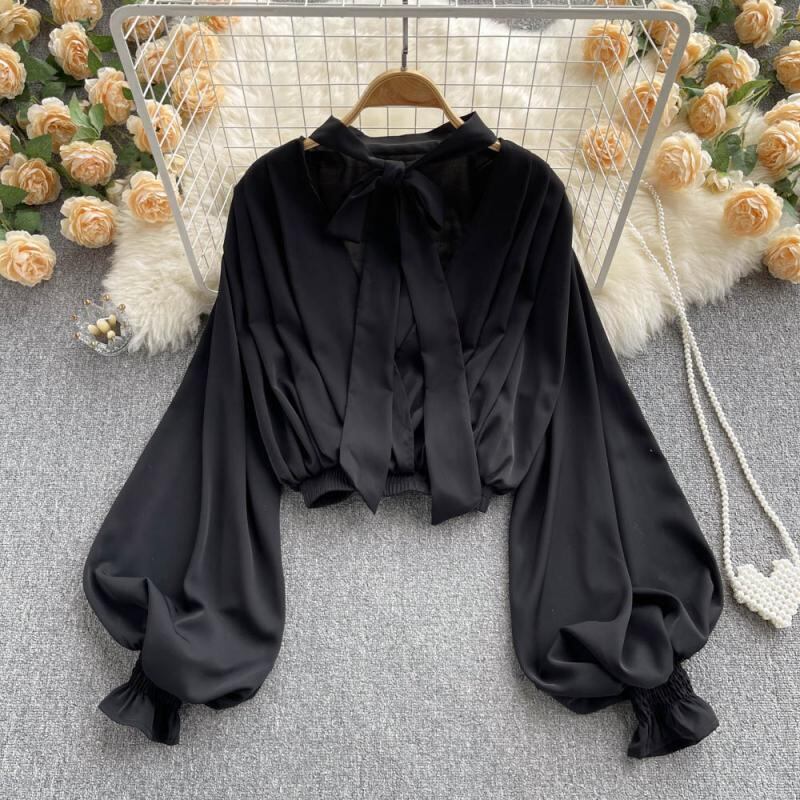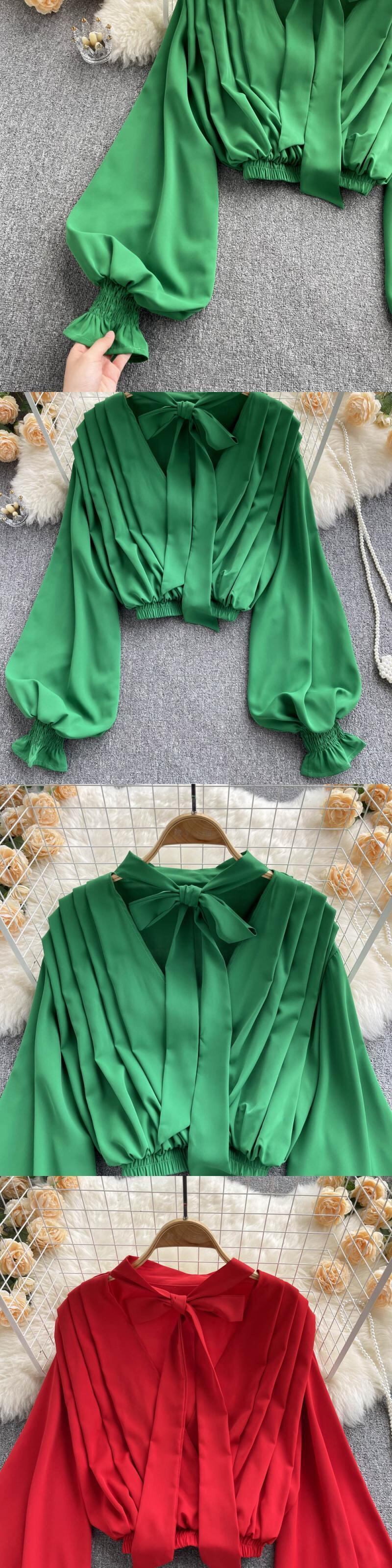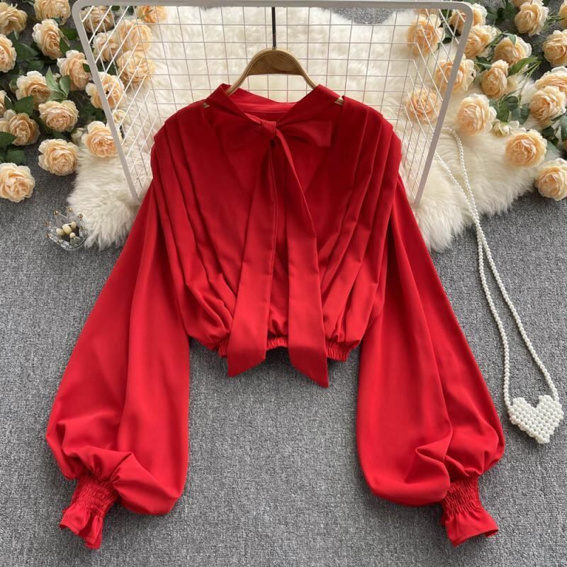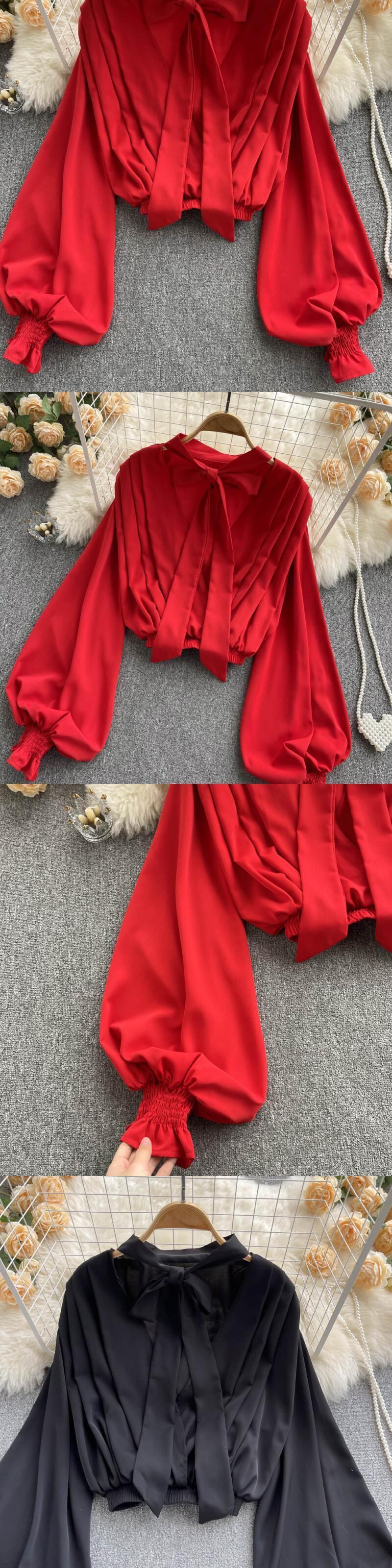 Spring 2022 new blouse retro design sense niche pleated bandage French lazy loose top レトロ ブラウス プリーツ スプリング 春物 lyxaj96059728432