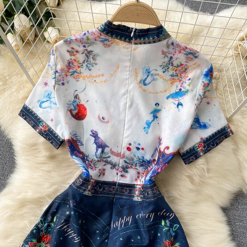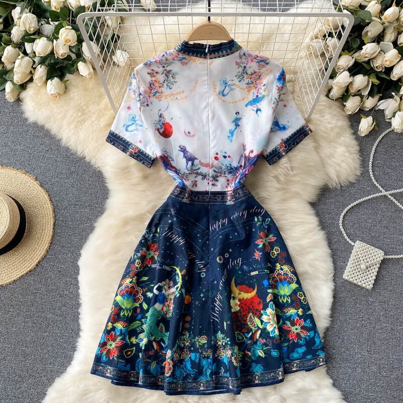 Age-reducing young dress ladies high-end women's sweet bow-neck slim short design print dress women ショート リボン 大人ガーリー スウィート キュート カジュアル スリム lyxaj91365483234
