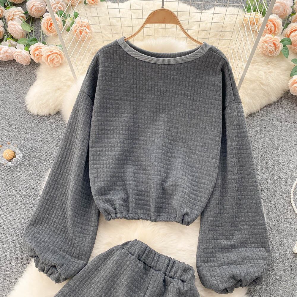 Hong Kong style suit women's retro chic long-sleeved short sweater high-waisted pleated lace casual wide-leg shorts two-piece set ショート ロング レトロ レース カジュアル プリーツ ショーツ ブルマー lyxaj73916059521