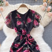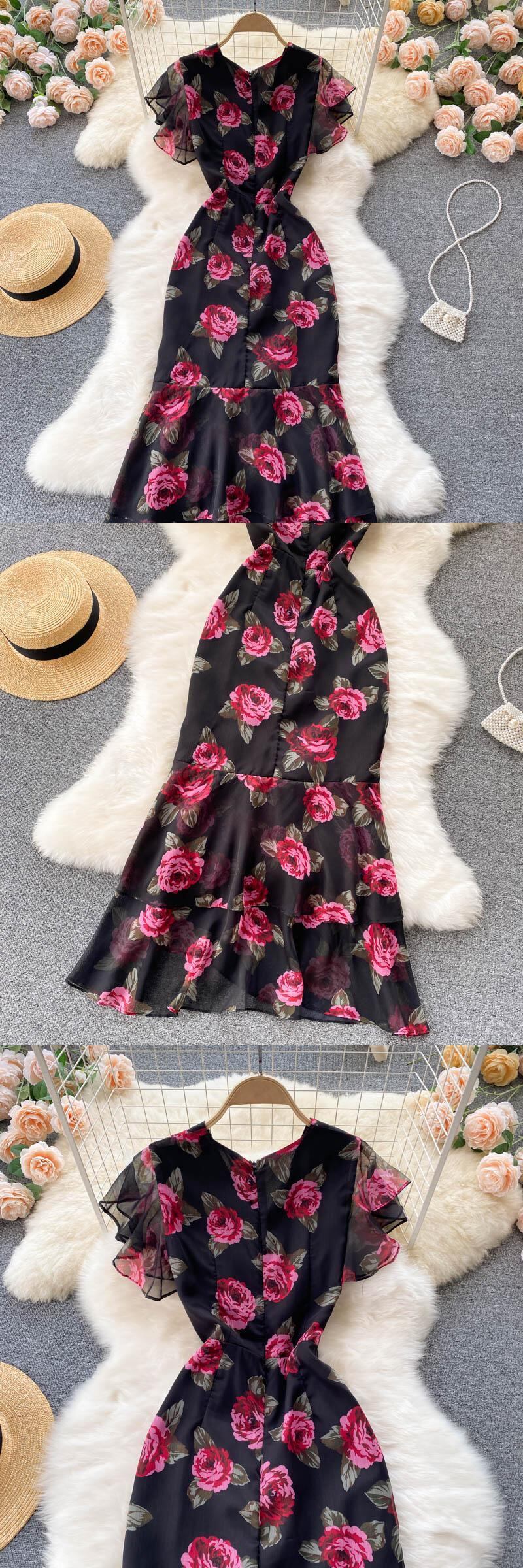 2021 new light luxury ladies chiffon print dress temperament ruffled fishtail dress women's skirt is thin シフォン スカート lyxaj33598542551
