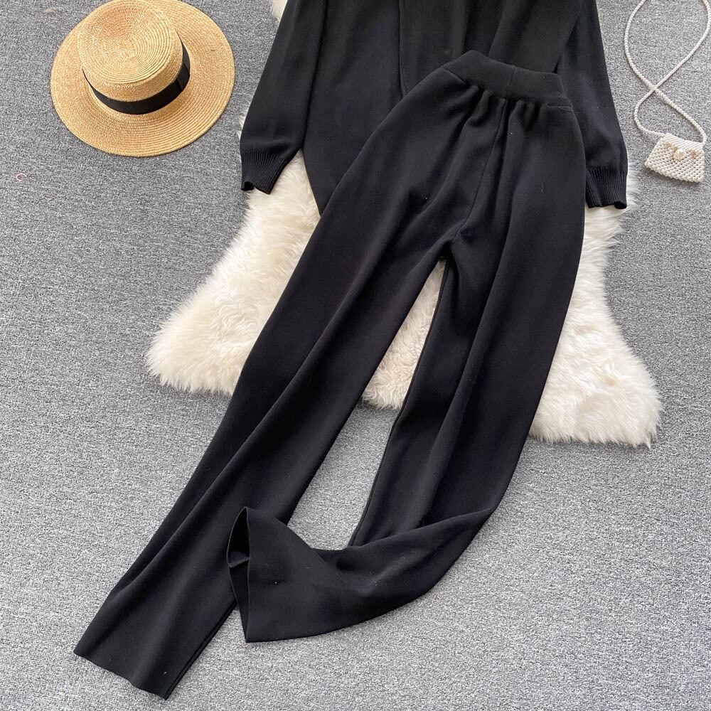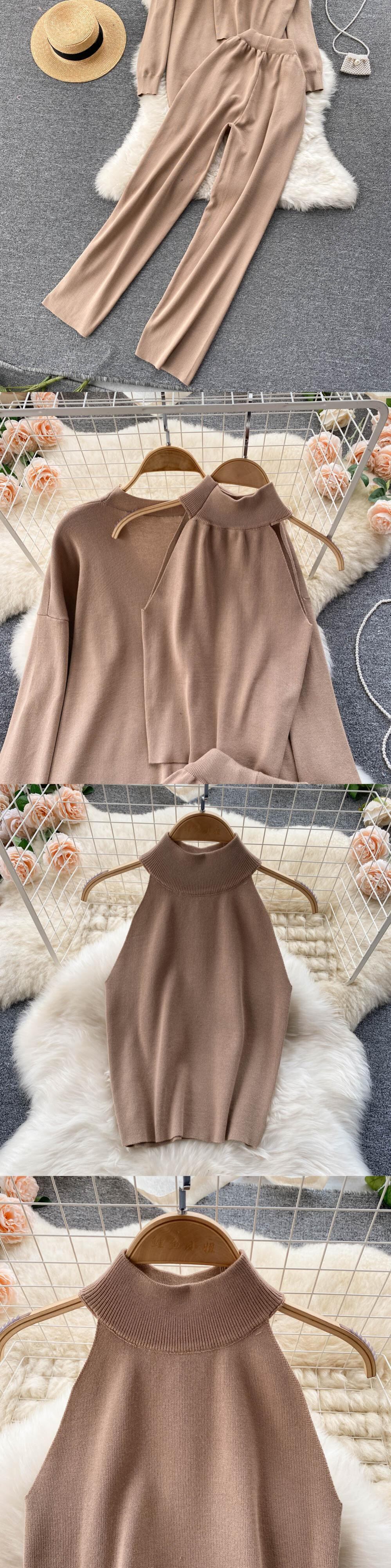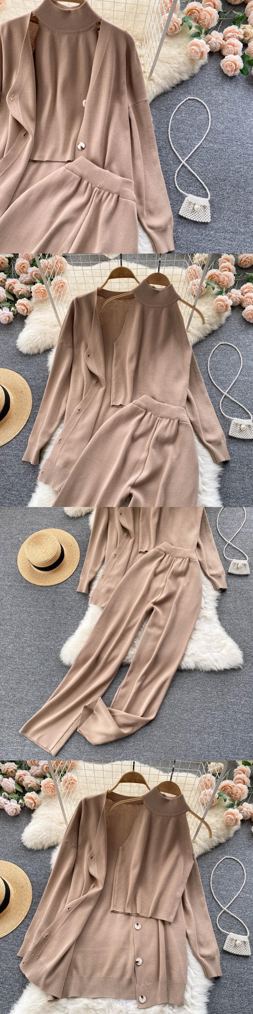 Salt-based fried street age-reducing medium and long loose temperament coat turtleneck vest women's three-piece suit with knitted trousers ロング ストリート lyxaj90465520403