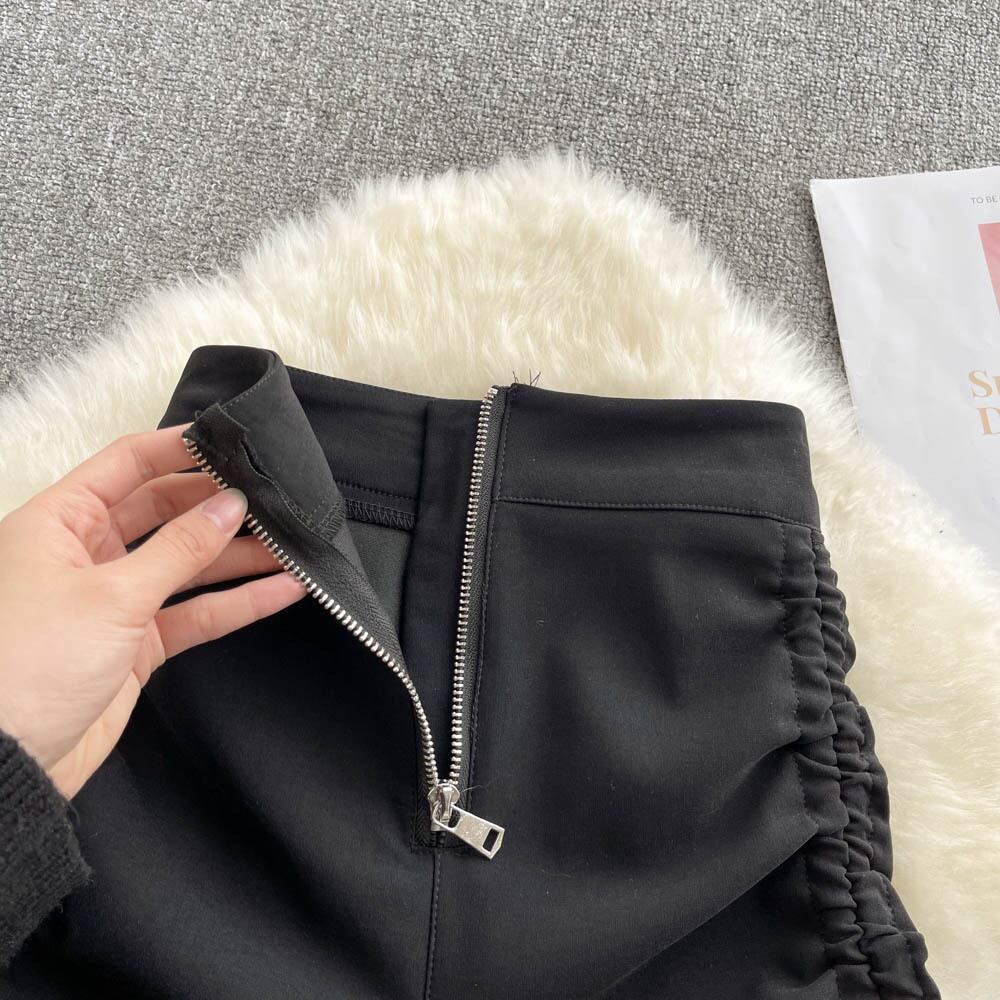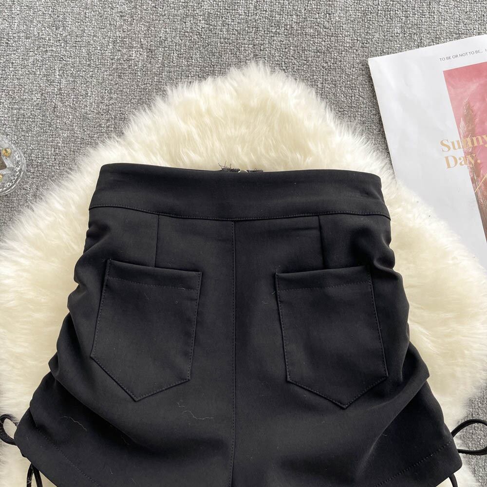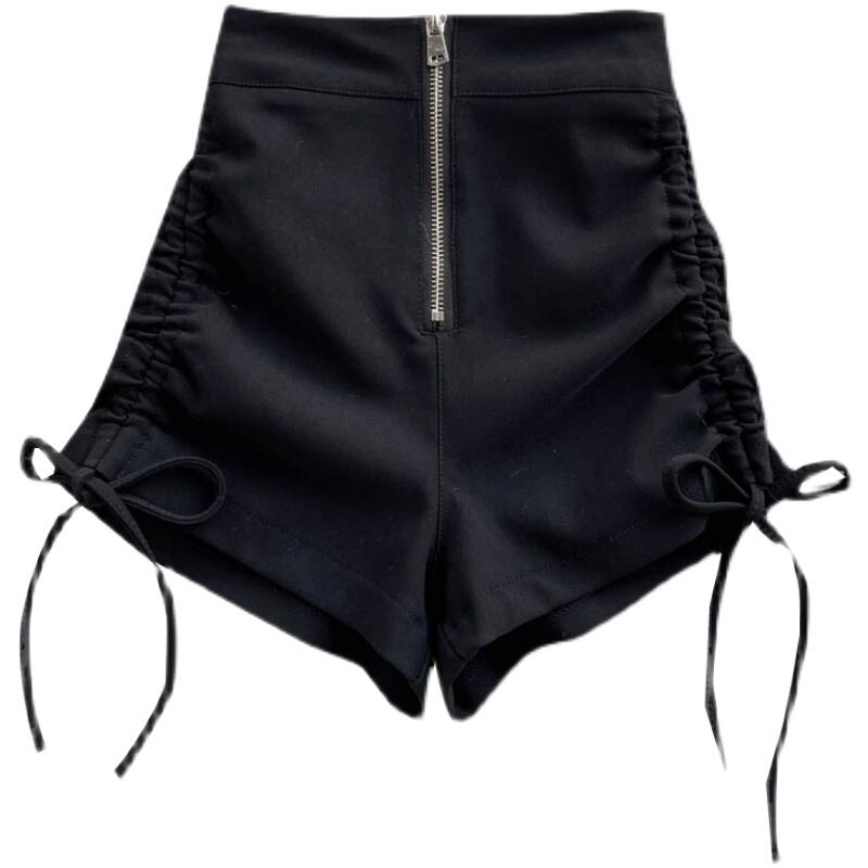 Both sides drawstring high waist zipper A-line wide-leg pants women's autumn 2022 version all-match solid color casual shorts trend ハイウェスト カジュアル オータム 秋物 ショーツ ブルマー Aライン ソリッドカラー lyxaj82958102457