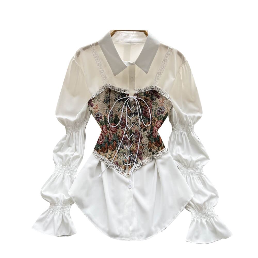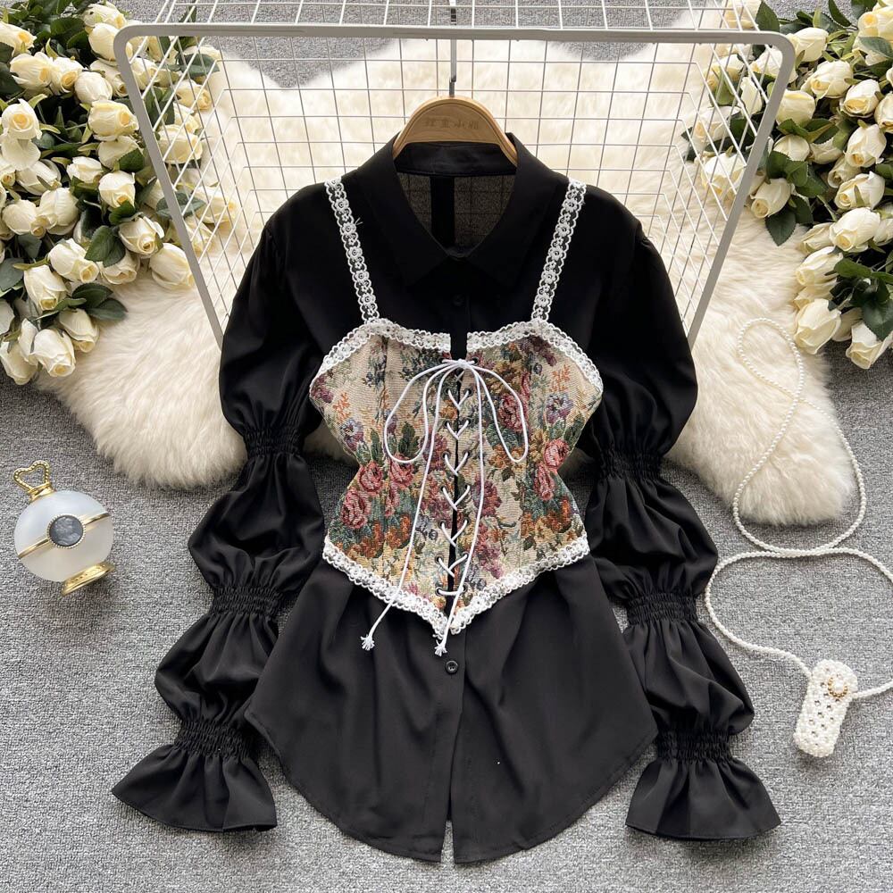 2022 spring and summer new design sense retro pattern straps outside wear small vest mid-length A-line fluffy shirt skirt レトロ ふわふわ スプリング 春物 サマー 夏物 スカート Aライン lyxaj17890262235
