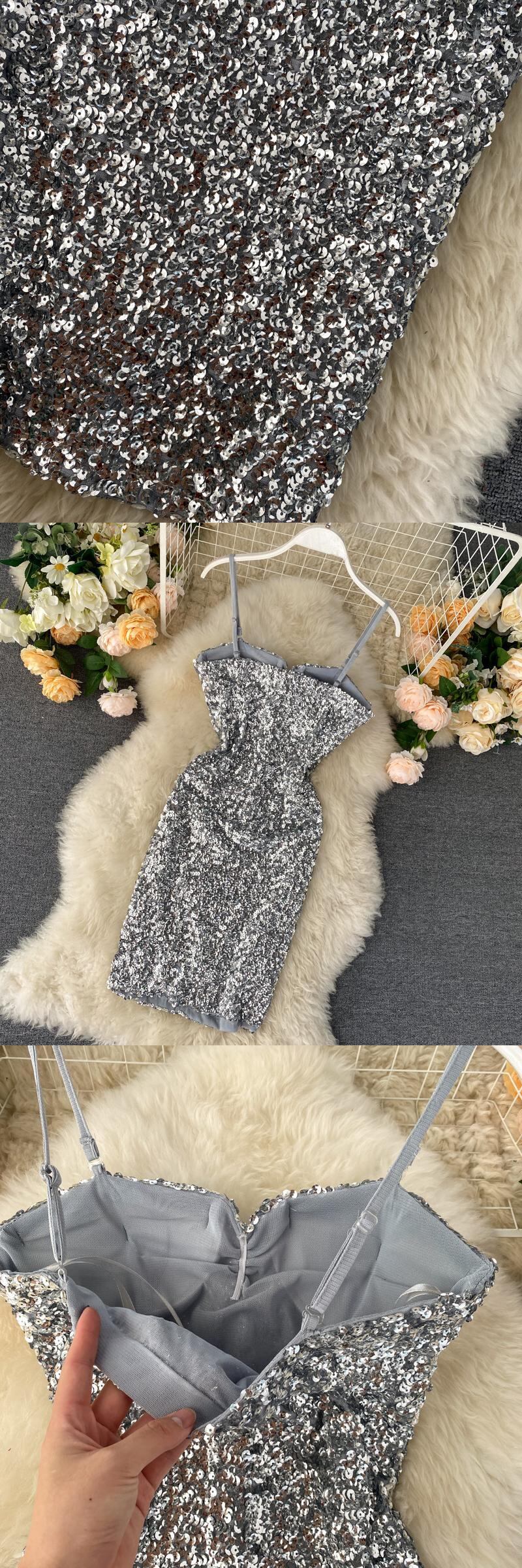 Net red celebrities can usually wear dresses sexy slim bag hip short skirt female summer bling glitter dress ショート レッド サマー 夏物 ドレス スカート スリム lyxaj62535934837