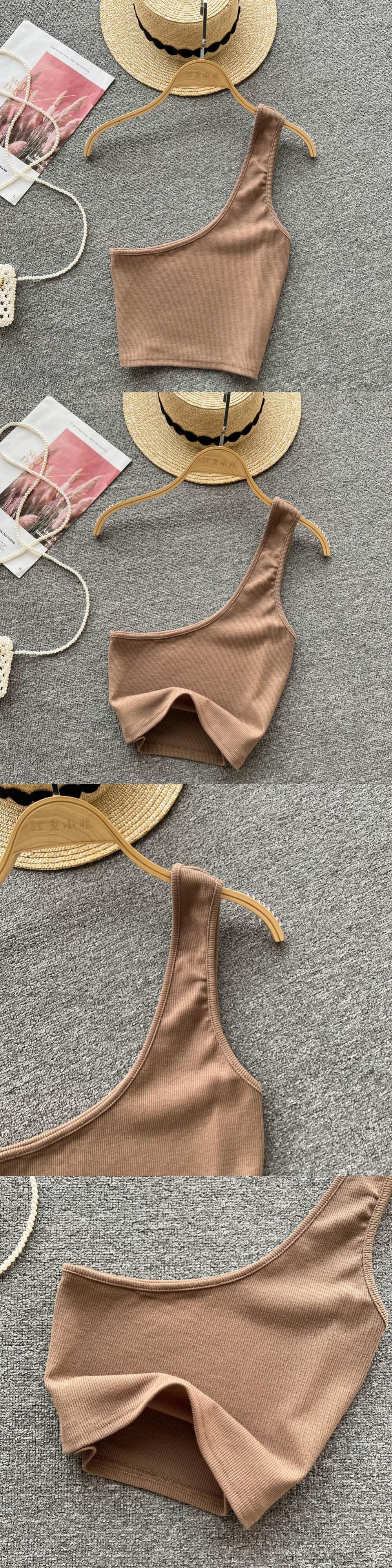 Short One-shoulder Bottoming Sleeveless Vest Women's Outer Wear Small Show Waist Sexy Hot Girl Style Sling Top Trendy ショート ノースリーブ lyxaj76089442691