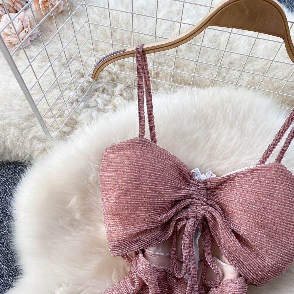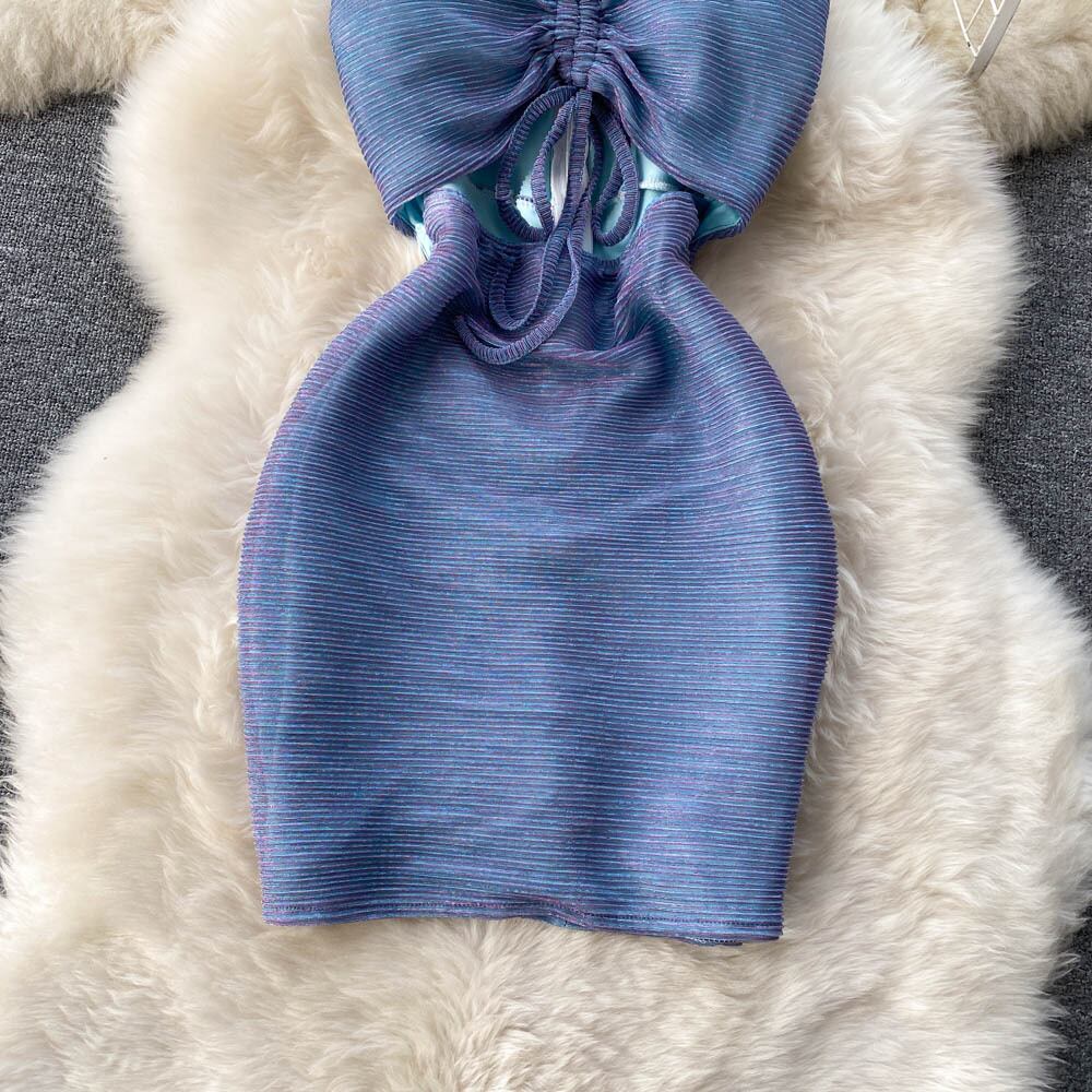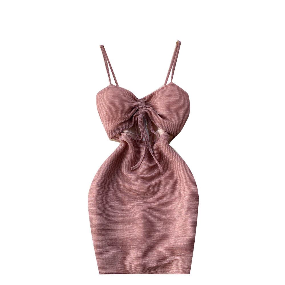 Sexy tight-fitting suspender skirt summer slim fit, hollow out waist, drawstring pleated short wrap hip dress women ショート プリーツ サマー 夏物 スカート スリム lyxaj82407473922